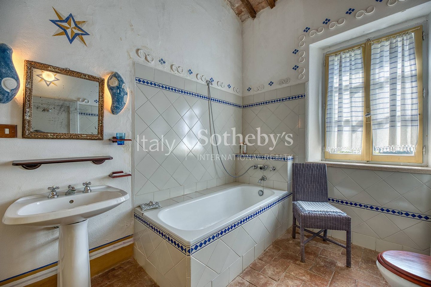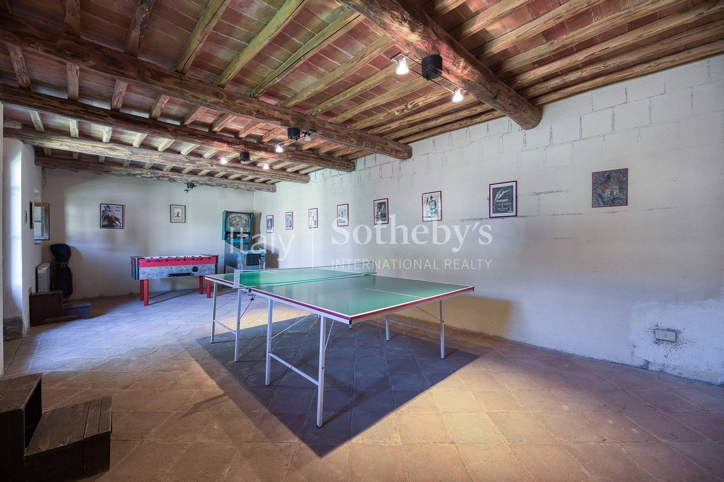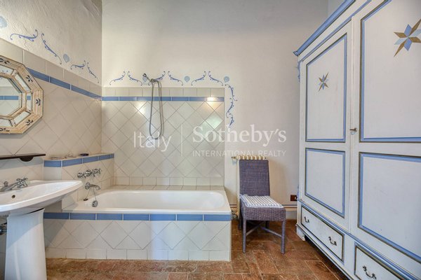 Das Bauernhaus ist in zwei einfachere, aber komplett bewohnbare Apartments unterteilt und verfügt insgesamt über sechs Schlafzimmer, sechs Bäder, Küchen und Wohnbereiche: eine ideale Lösung für Gäste oder Beherbergungsbetriebe. Das Haus des Hausmeisters mit eigenem Garten von ca. 1.200 qm besteht aus zwei Schlafzimmern und zwei Bädern. Die historische Scheune, die derzeit als Lager genutzt wird, eignet sich perfekt zur Umwandlung in einen Gemeinschaftsraum, ein Kreativatelier, einen Yogaraum oder einen Veranstaltungs- und Begegnungsraum. Das zweite Lagerhaus, ebenerdig und gegenüber der Villa gelegen, hat die idealen Maße und Eigenschaften, um zu einem multifunktionalen Bereich zu werden.