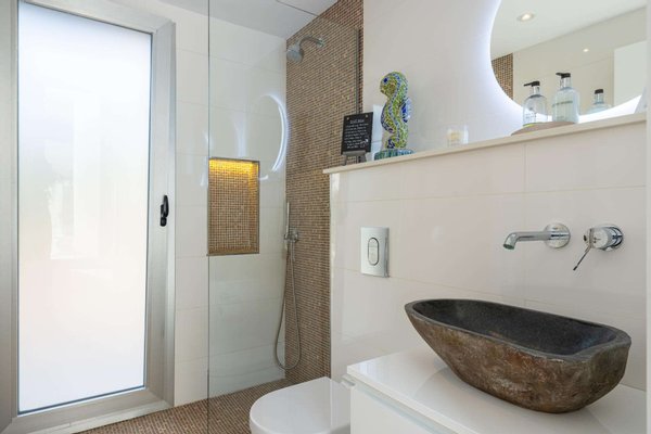 Das Haus bietet insgesamt großzügige vier Schlafzimmer, jedes mit eigenem Bad, und sorgt so für höchste Privatsphäre sowohl für die Bewohner als auch für Gäste.