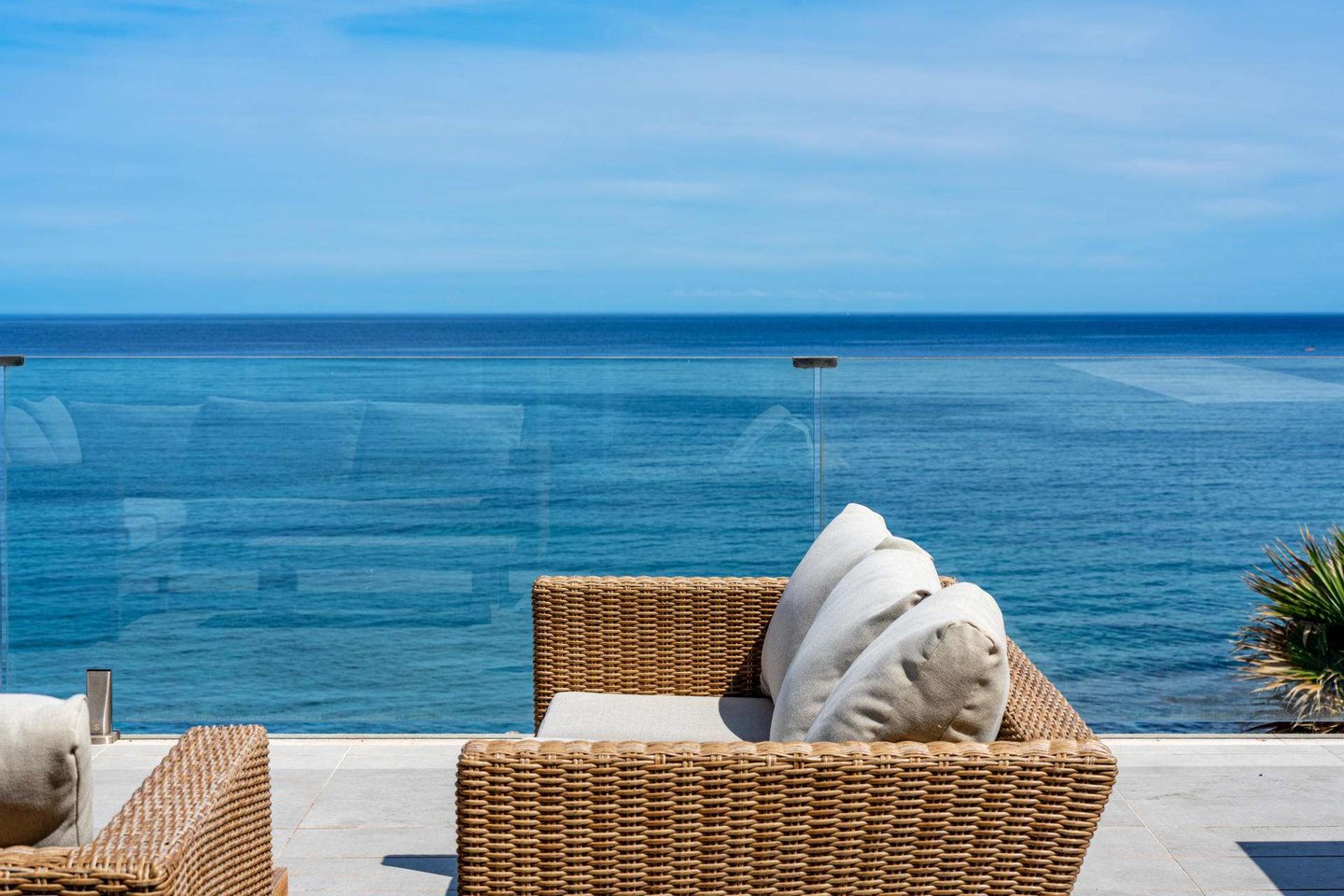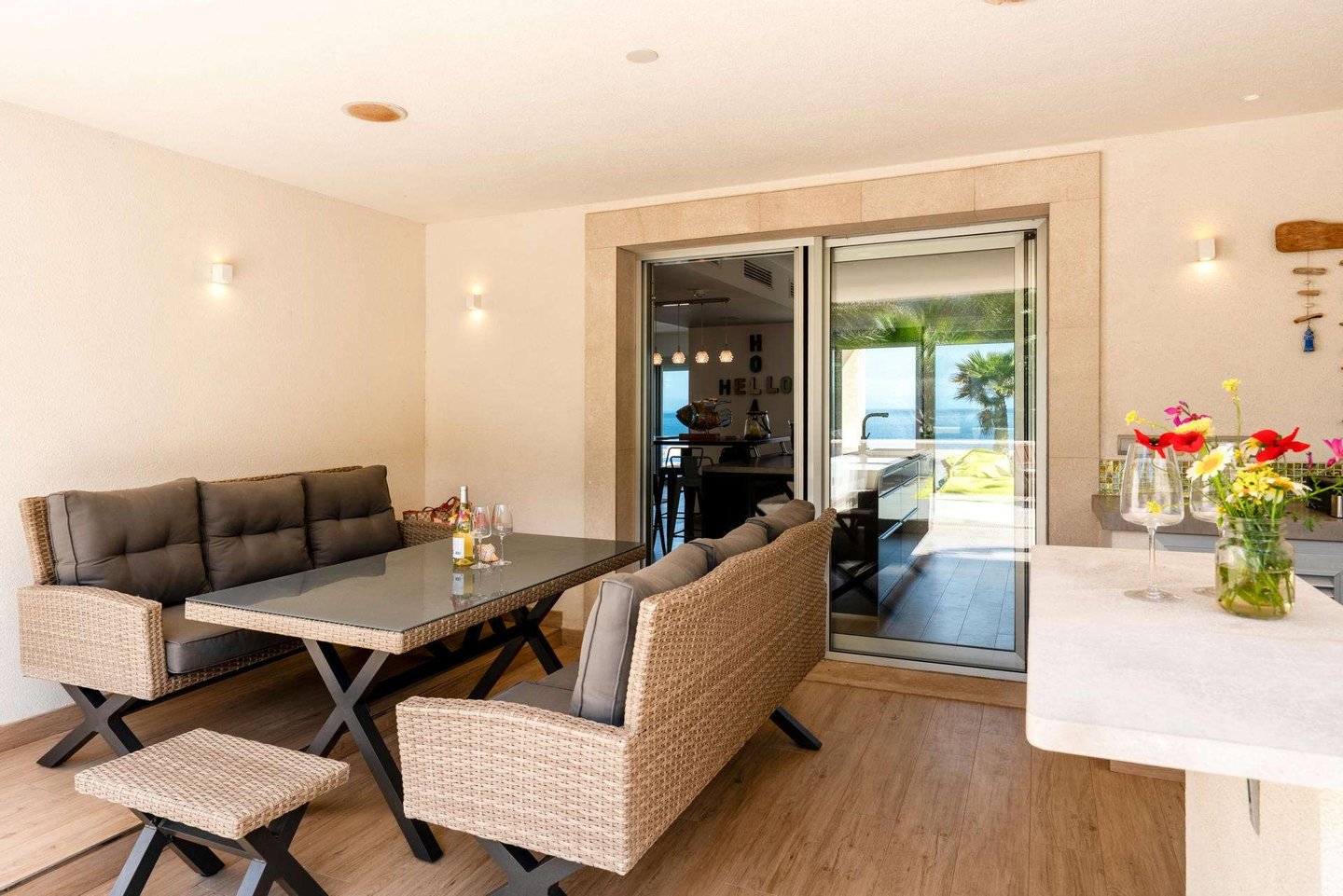 Ein weiteres Highlight ist der gepflegte Garten mit einem großzügigen Infinity Pool. Durch eine Gartentür gelangt man direkt zu einer kleinen Badebucht, in der man das kristallklare Wasser genießen kann. Der Außenbereich ist ideal für unvergessliche Sommertage und lädt dazu ein, die Sonne und das Meer in vollen Zügen zu erleben.