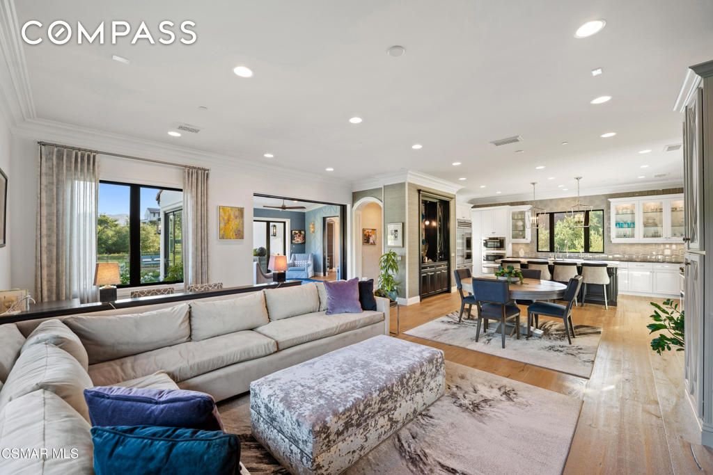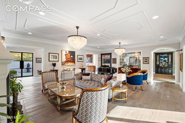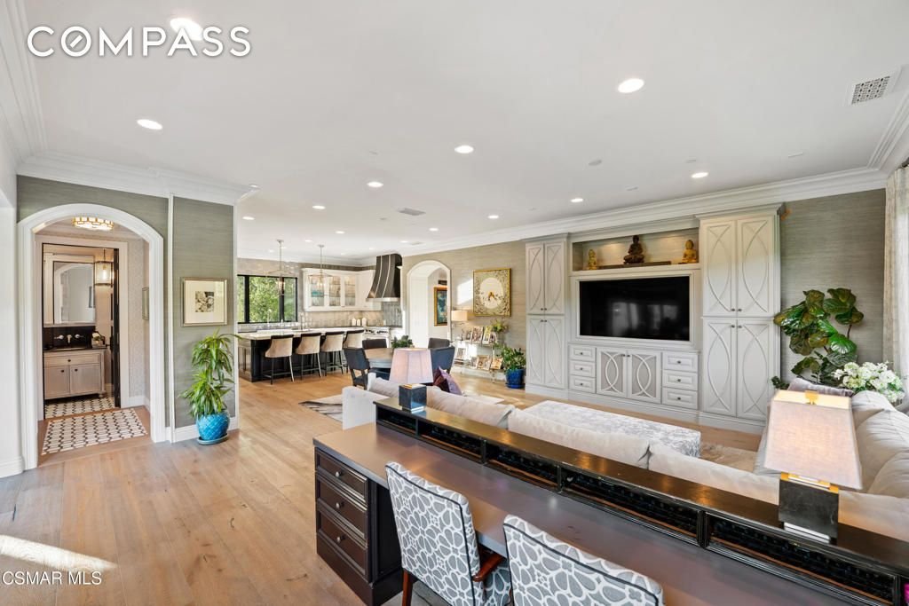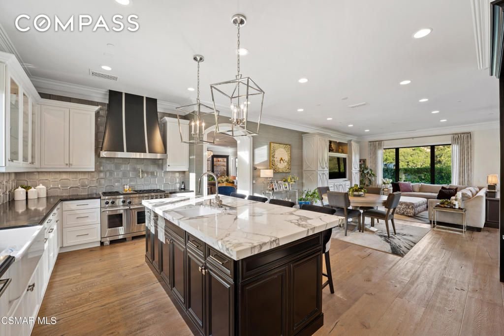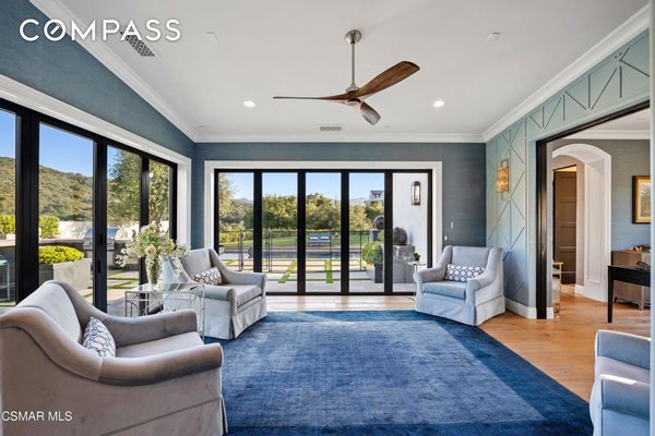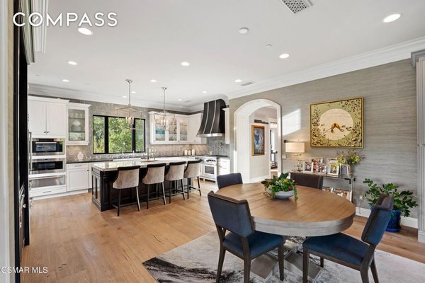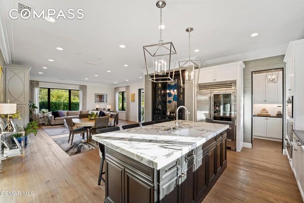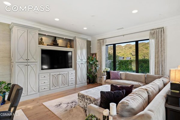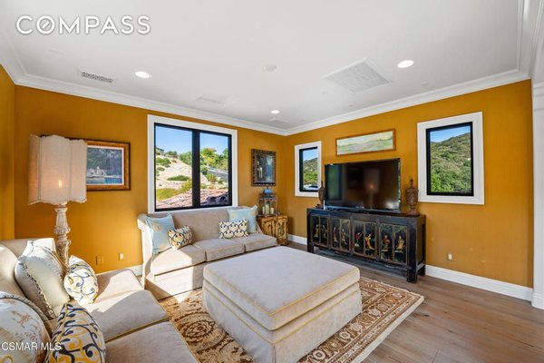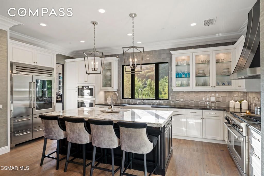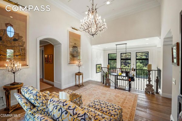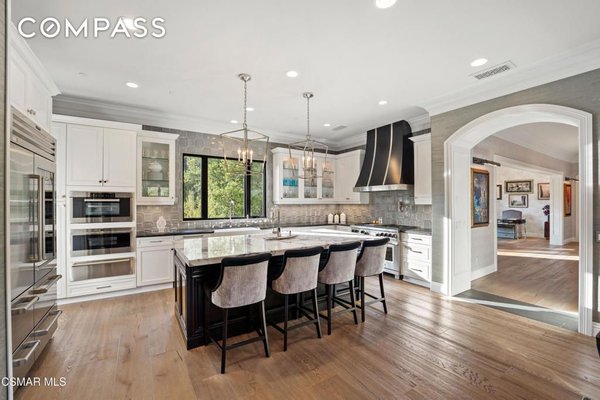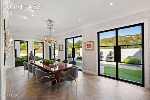 Mit Abstand das eleganteste Haus in Calabasas. Dieses Designer-Anwesen befindet sich hinter Toren in der exklusiven Enklave Country Ridge und bietet etwa 6.500 Quadratmeter Wohnfläche auf einem weitläufigen 8,5 Hektar großen Grundstück. Als eine von nur sieben Residenzen verbindet das Haus spanische moderne Architektur mit seltener Privatsphäre vor der Kulisse der Santa Monica Mountains. Der große Eingang öffnet sich zu lichtdurchfluteten Innenräumen, die durch einen dramatischen, mit Leinen umwickelten Kamin, detaillierte Decken und maßgefertigte Schränke hervorgehoben werden. Designer-Wandverkleidungen und Armaturen von Restoration Hardware bringen überall Wärme und Eleganz. Das formelle Esszimmer und der sonnendurchflutete Wintergarten gehen nahtlos in Terrassen und Gärten über, die sich ideal für Unterhaltung eignen. Im Herzen des Hauses befindet sich eine Küche des Küchenchefs, die mit Wolf-, Sub-Zero- und ASKO-Geräten ausgestattet ist und durch ein Catering und eine Butler-Speisekammer ergänzt wird. Der angrenzende große Raum führt zu gepflegten Außenbereichen mit einem Pool im Resort-Stil, einem Grillplatz und Zen-Gärten, die von Blick auf den Canyon und die Bergrücken eingerahmt sind. Zwei Schlafzimmer im Erdgeschoss bieten Vielseitigkeit, darunter eine makellose Junior-Master-Suite mit Sauna, Badewanne und begehbarem Kleiderschrank - perfekt für Schwiegerquartiere. Im Obergeschoss sorgen fünf Schlafzimmer mit eigenem Bad, eine Bibliothek und eine Höhle für Komfort und Stil, darunter eine Hauptsuite mit eigenem Balkon, Whirlpool und Dampfdusche. Das Gelände bietet viel Platz für eine Casita oder ADU, die sowohl den Lebensstil als auch den Wert verbessert. Eine seltene Kombination aus Größe, Luxus und durchdachtem Design, dieses Anwesen fängt die Essenz des südkalifornischen Lebens ein.