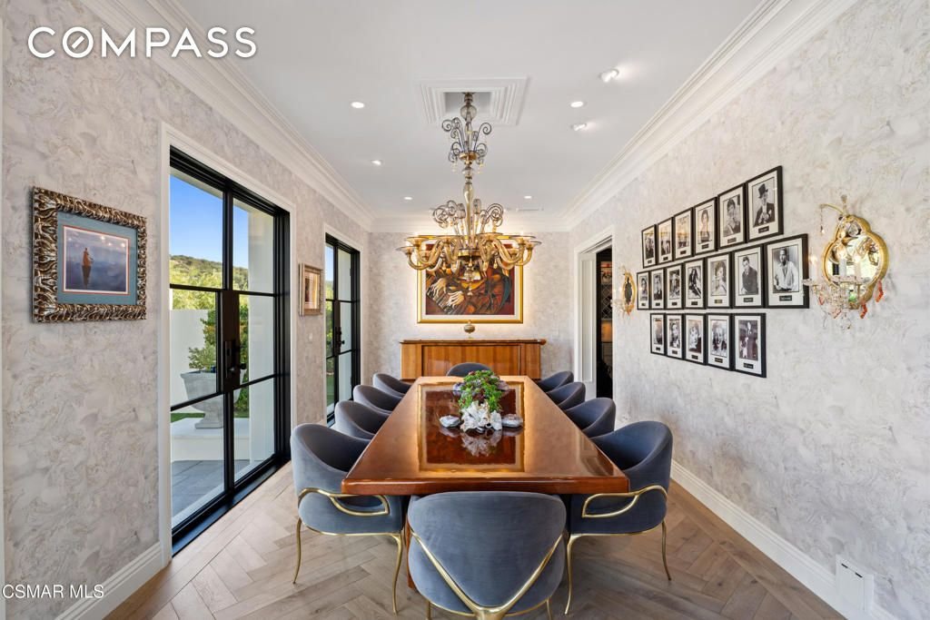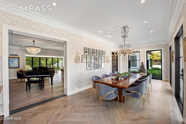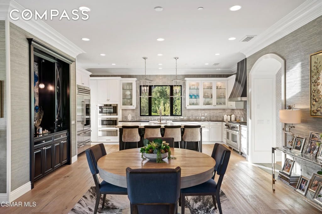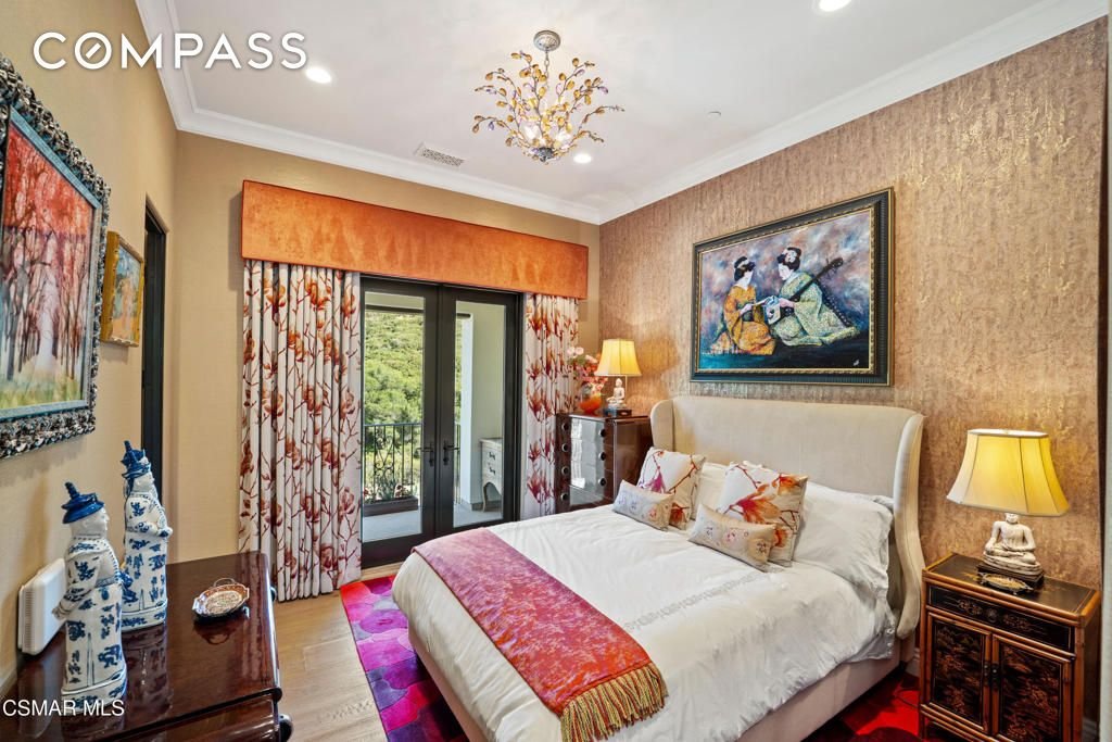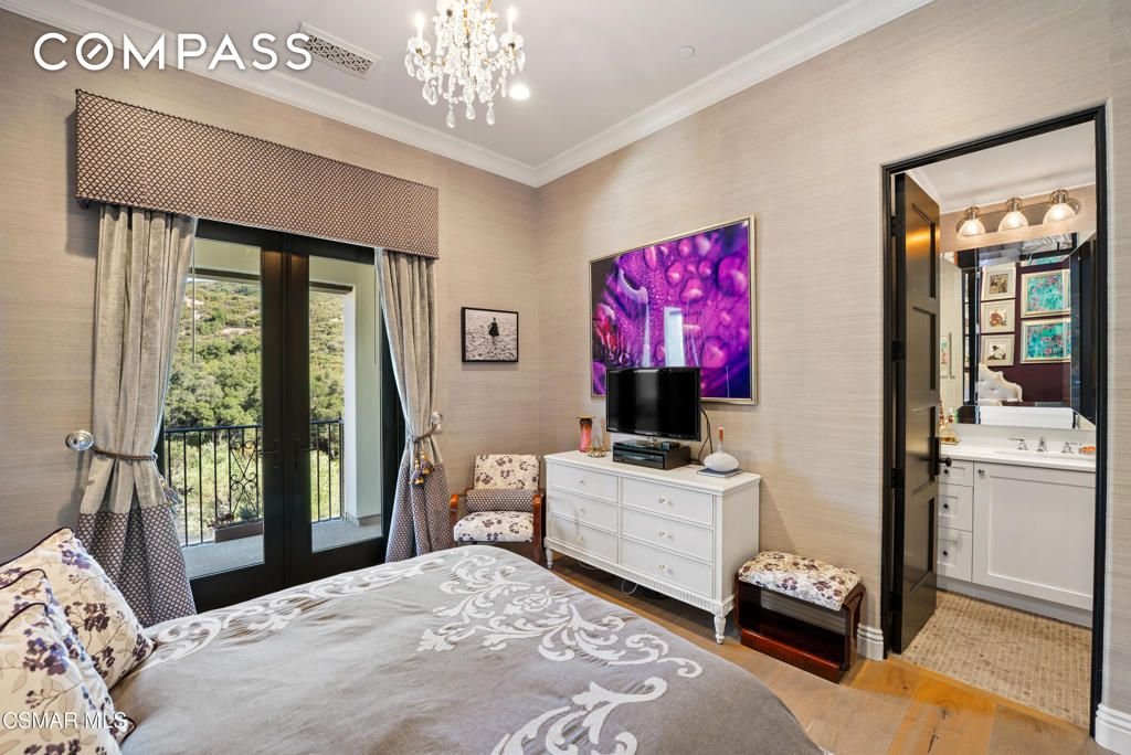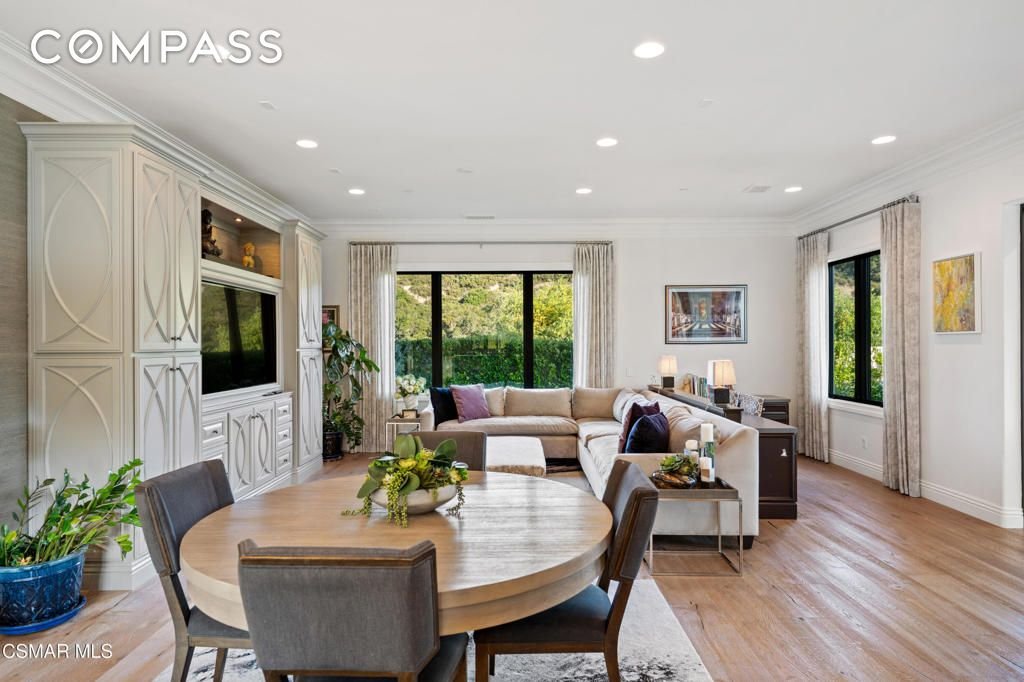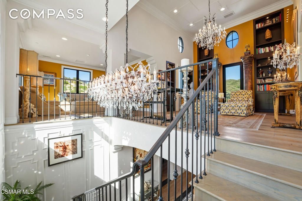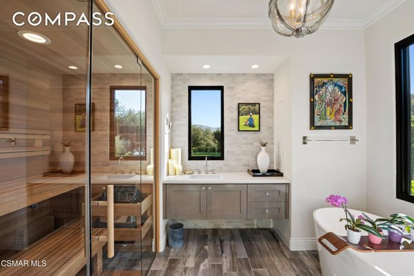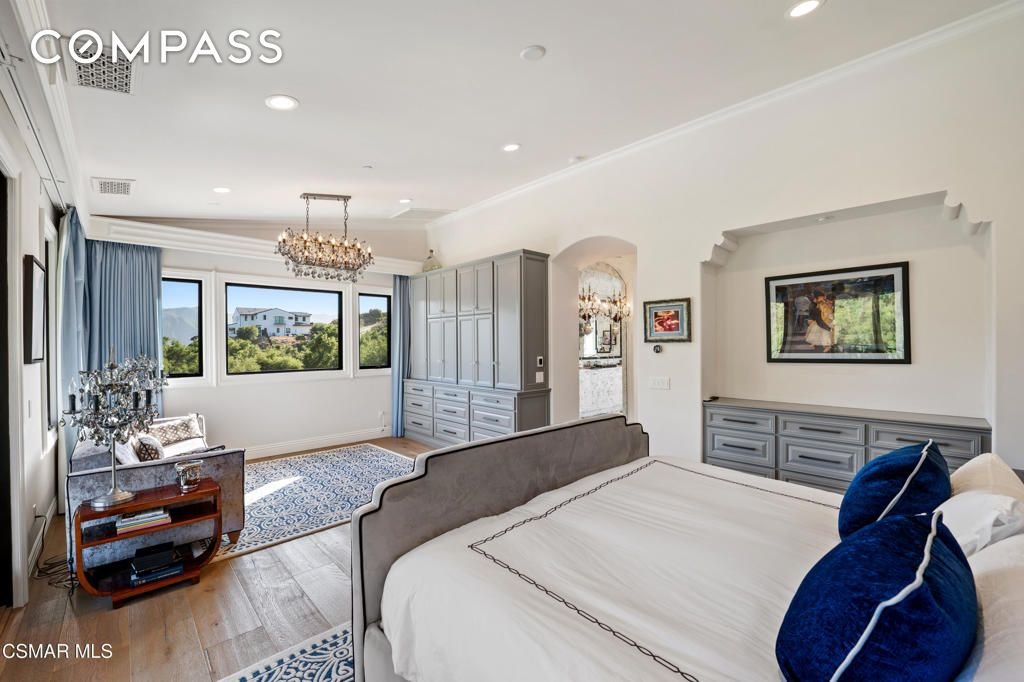 Mit Abstand das eleganteste Haus in Calabasas. Dieses Designer-Anwesen befindet sich hinter Toren in der exklusiven Enklave Country Ridge und bietet etwa 6.500 Quadratmeter Wohnfläche auf einem weitläufigen 8,5 Hektar großen Grundstück. Als eine von nur sieben Residenzen verbindet das Haus spanische moderne Architektur mit seltener Privatsphäre vor der Kulisse der Santa Monica Mountains. Der große Eingang öffnet sich zu lichtdurchfluteten Innenräumen, die durch einen dramatischen, mit Leinen umwickelten Kamin, detaillierte Decken und maßgefertigte Schränke hervorgehoben werden. Designer-Wandverkleidungen und Armaturen von Restoration Hardware bringen überall Wärme und Eleganz. Das formelle Esszimmer und der sonnendurchflutete Wintergarten gehen nahtlos in Terrassen und Gärten über, die sich ideal für Unterhaltung eignen. Im Herzen des Hauses befindet sich eine Küche des Küchenchefs, die mit Wolf-, Sub-Zero- und ASKO-Geräten ausgestattet ist und durch ein Catering und eine Butler-Speisekammer ergänzt wird. Der angrenzende große Raum führt zu gepflegten Außenbereichen mit einem Pool im Resort-Stil, einem Grillplatz und Zen-Gärten, die von Blick auf den Canyon und die Bergrücken eingerahmt sind. Zwei Schlafzimmer im Erdgeschoss bieten Vielseitigkeit, darunter eine makellose Junior-Master-Suite mit Sauna, Badewanne und begehbarem Kleiderschrank - perfekt für Schwiegerquartiere. Im Obergeschoss sorgen fünf Schlafzimmer mit eigenem Bad, eine Bibliothek und eine Höhle für Komfort und Stil, darunter eine Hauptsuite mit eigenem Balkon, Whirlpool und Dampfdusche. Das Gelände bietet viel Platz für eine Casita oder ADU, die sowohl den Lebensstil als auch den Wert verbessert. Eine seltene Kombination aus Größe, Luxus und durchdachtem Design, dieses Anwesen fängt die Essenz des südkalifornischen Lebens ein.