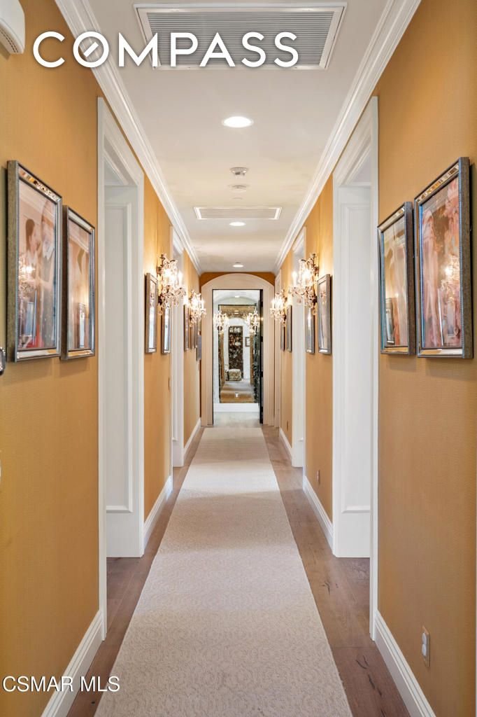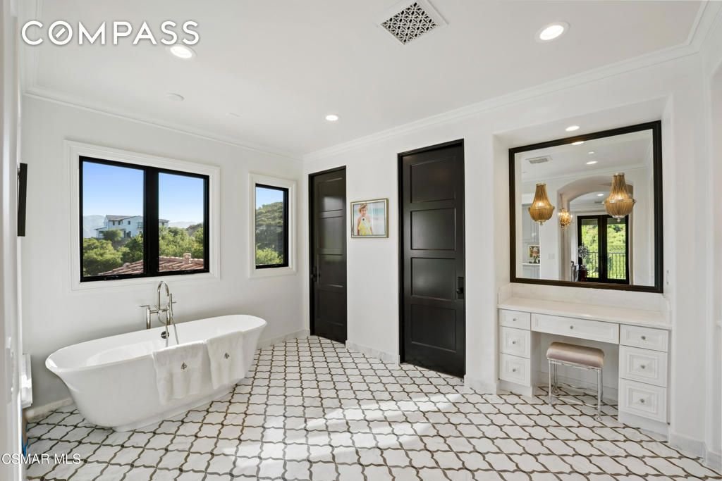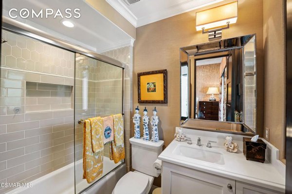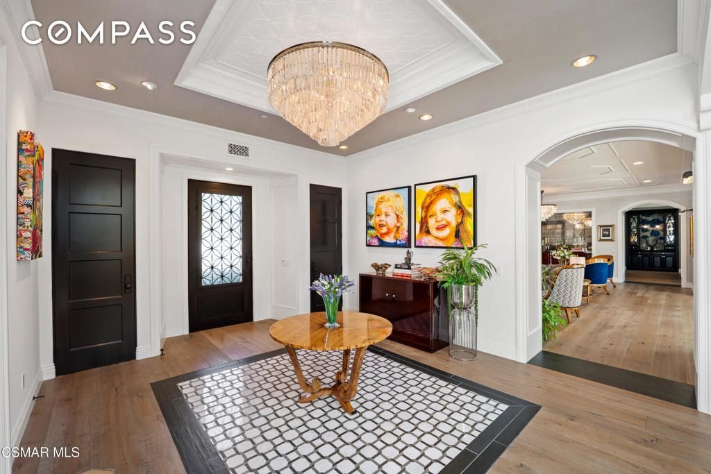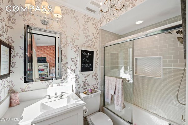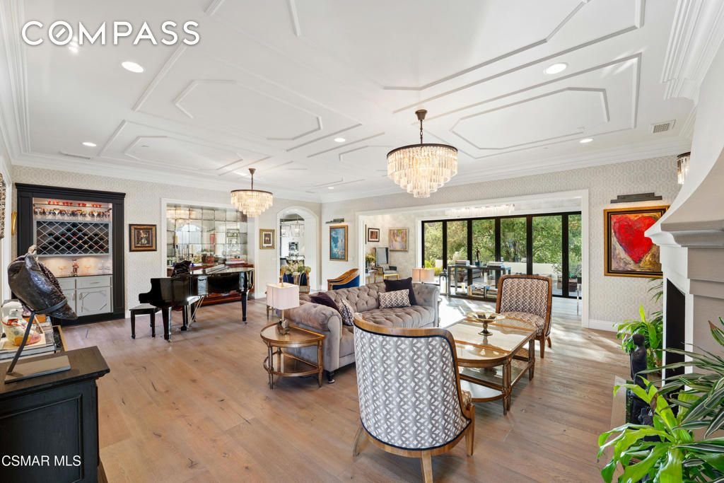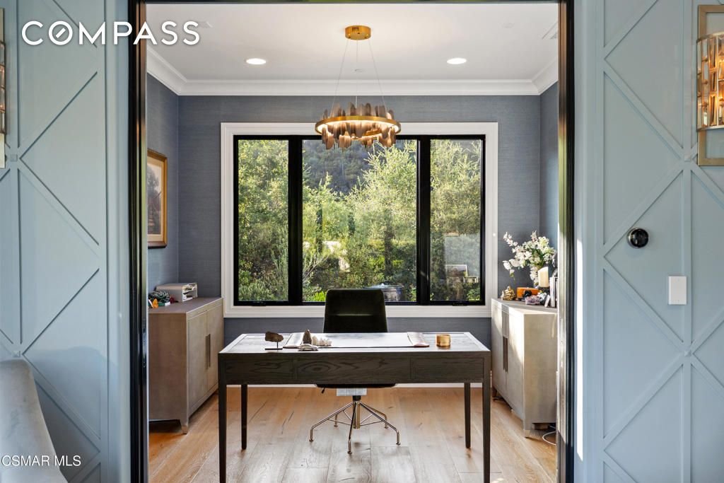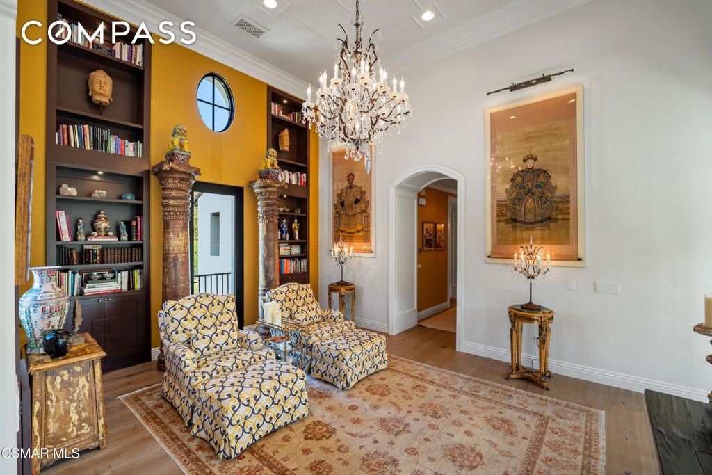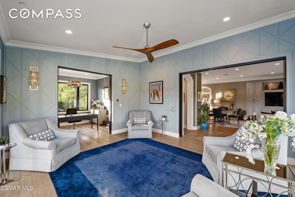 Mit Abstand das eleganteste Haus in Calabasas. Dieses Designer-Anwesen befindet sich hinter Toren in der exklusiven Enklave Country Ridge und bietet etwa 6.500 Quadratmeter Wohnfläche auf einem weitläufigen 8,5 Hektar großen Grundstück. Als eine von nur sieben Residenzen verbindet das Haus spanische moderne Architektur mit seltener Privatsphäre vor der Kulisse der Santa Monica Mountains. Der große Eingang öffnet sich zu lichtdurchfluteten Innenräumen, die durch einen dramatischen, mit Leinen umwickelten Kamin, detaillierte Decken und maßgefertigte Schränke hervorgehoben werden. Designer-Wandverkleidungen und Armaturen von Restoration Hardware bringen überall Wärme und Eleganz. Das formelle Esszimmer und der sonnendurchflutete Wintergarten gehen nahtlos in Terrassen und Gärten über, die sich ideal für Unterhaltung eignen. Im Herzen des Hauses befindet sich eine Küche des Küchenchefs, die mit Wolf-, Sub-Zero- und ASKO-Geräten ausgestattet ist und durch ein Catering und eine Butler-Speisekammer ergänzt wird. Der angrenzende große Raum führt zu gepflegten Außenbereichen mit einem Pool im Resort-Stil, einem Grillplatz und Zen-Gärten, die von Blick auf den Canyon und die Bergrücken eingerahmt sind. Zwei Schlafzimmer im Erdgeschoss bieten Vielseitigkeit, darunter eine makellose Junior-Master-Suite mit Sauna, Badewanne und begehbarem Kleiderschrank - perfekt für Schwiegerquartiere. Im Obergeschoss sorgen fünf Schlafzimmer mit eigenem Bad, eine Bibliothek und eine Höhle für Komfort und Stil, darunter eine Hauptsuite mit eigenem Balkon, Whirlpool und Dampfdusche. Das Gelände bietet viel Platz für eine Casita oder ADU, die sowohl den Lebensstil als auch den Wert verbessert. Eine seltene Kombination aus Größe, Luxus und durchdachtem Design, dieses Anwesen fängt die Essenz des südkalifornischen Lebens ein.