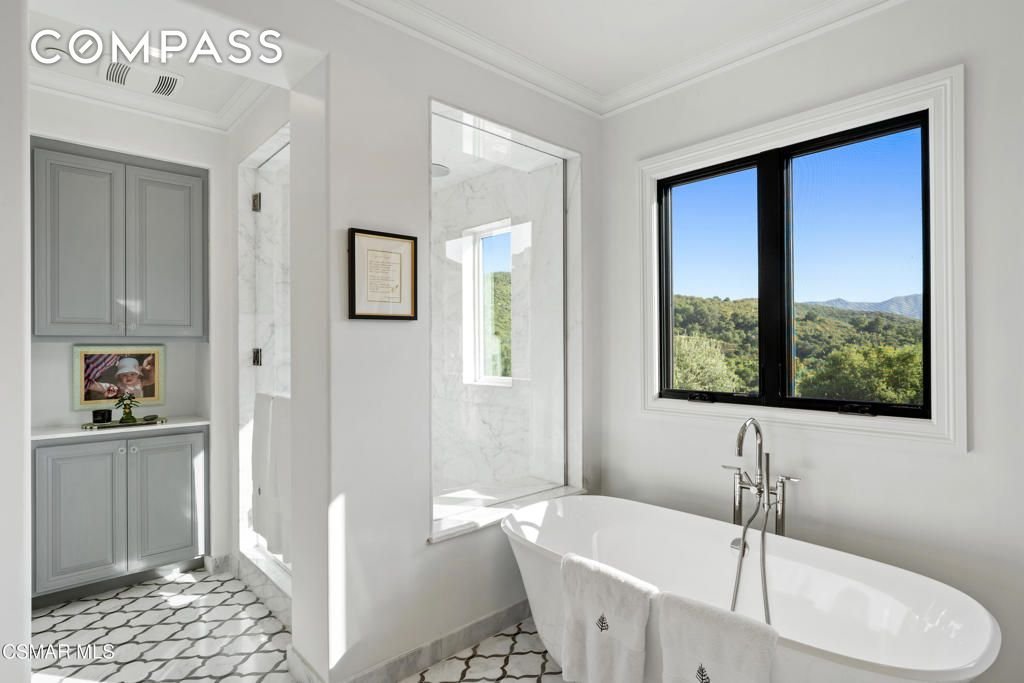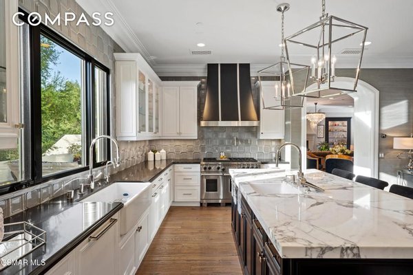 Mit Abstand das eleganteste Haus in Calabasas. Dieses Designer-Anwesen befindet sich hinter Toren in der exklusiven Enklave Country Ridge und bietet etwa 6.500 Quadratmeter Wohnfläche auf einem weitläufigen 8,5 Hektar großen Grundstück. Als eine von
