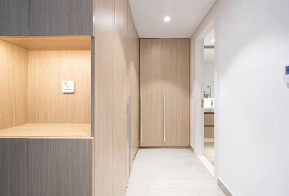 Ein Highlight dieser Wohnung sind die vielen Einbauschränke, die für ausreichend Stauraum sorgen. Der Einbauschrank im Schlafzimmer bietet sogar Platz für einen begehbaren Kleiderschrank. Dank des Smart Home Systems können Sie Ihr Zuhause ganz einfach steuern und überwachen.