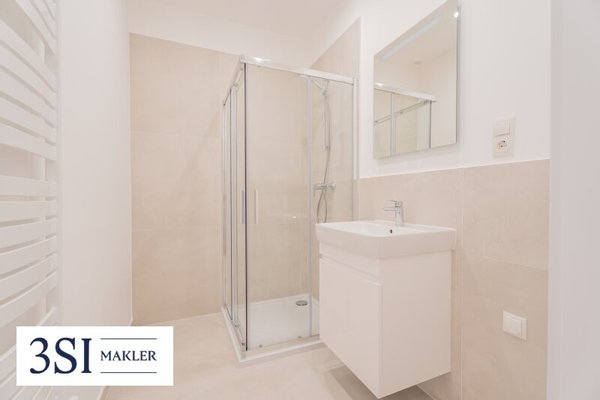 - Badezimmer mit Dusche und Waschmaschinenanschluss