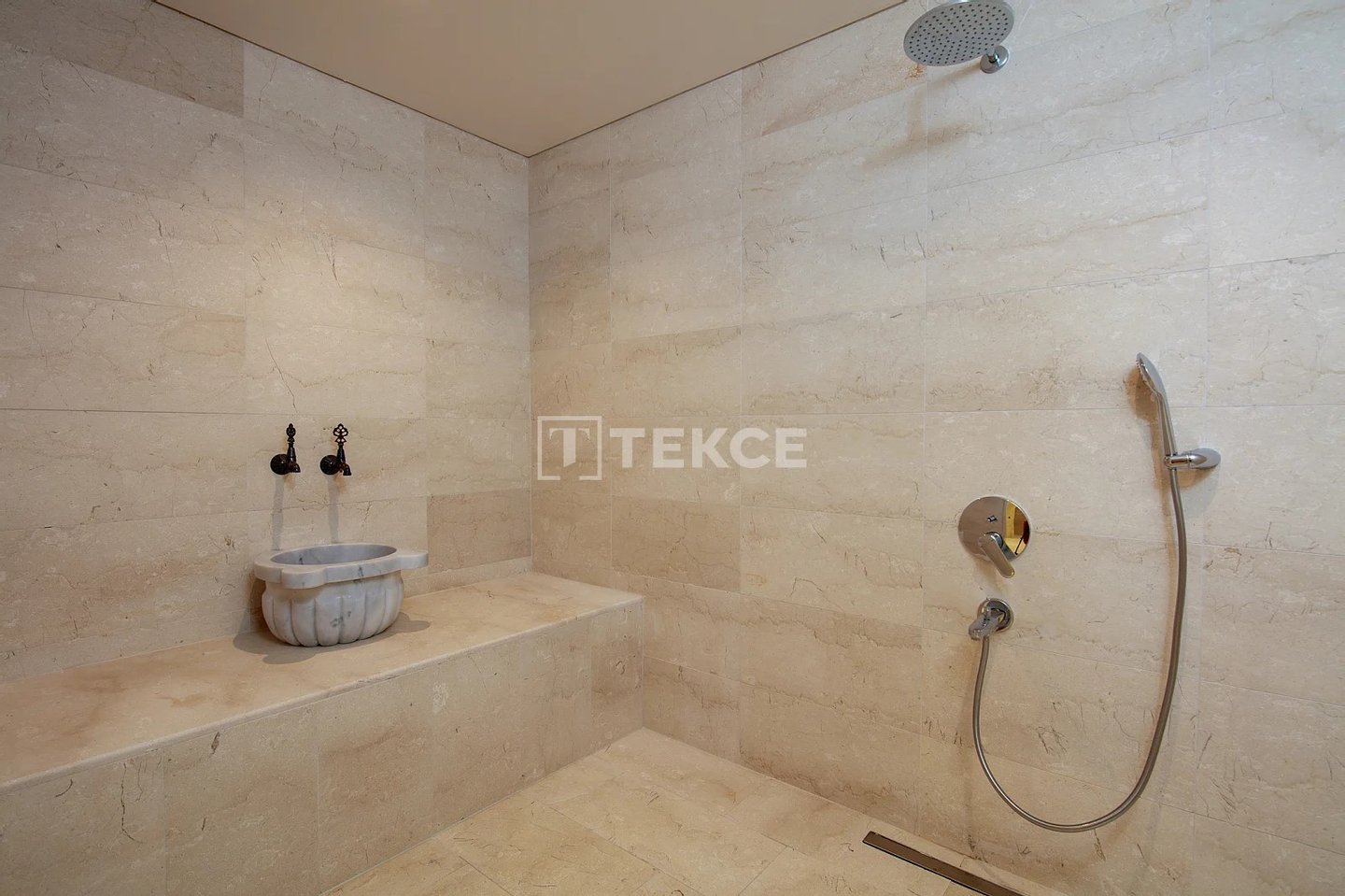 Auf der Insel, auf der sich die Villa zum Verkauf in Fethiye befindet, gibt es Cafés und Restaurants als Treffpunkte, und die Hauptverkehrsverbindung wird durch regelmäßige Bootsfahrten von Fethiye Çalış aus gewährleistet, das 1,5 Seemeilen entfernt liegt.