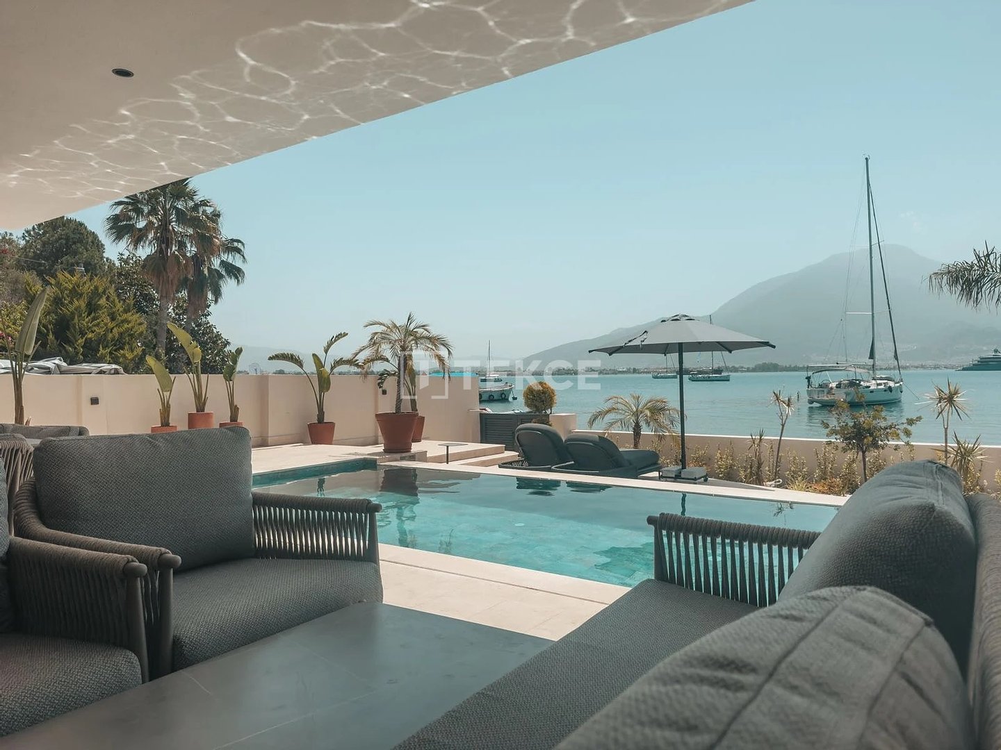 Diese Luxusvilla liegt direkt am Meer auf der Insel Sovalye, einer der einzigartigen Schönheiten von Fethiye, und bietet Komfort und Privilegien zugleich. Die Villa verfügt über 3 geräumige Schlafzimmer und 3 moderne Badezimmer, jedes Zimmer ist mit einem großzügigen Wohnbereich und stilvollen Details ausgestattet. Diese besondere Villa, die mit hochwertigen Materialien sorgfältig gebaut wurde, besticht durch einen eigenen Steg und einen privaten Pool. Dank der großen Terrasse und dem üppigen Garten bietet Ihr Außenbereich maximalen Genuss. Das begrenzte Angebot und die hohe Nachfrage auf der Insel Sovalye machen diese Villa sowohl zu einem einzigartigen Wohnraum als auch zu einer wertvollen Investitionsmöglichkeit.