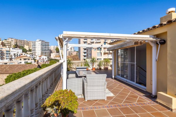 Diese Triplex-Wohnung befindet sich in einem der kommerziellsten Viertel von Palma, in der Nähe von Porto Pi. Es besticht durch das großartige Tageslicht in allen Zimmern. Beim Betreten finden wir das Hauptschlafzimmer mit eigenem Bad. Im Obergeschoss befinden sich das Wohnzimmer, die Küche, ein zweites Schlafzimmer und ein Badezimmer. Auf der obersten Ebene umgibt eine geräumige Terrasse das gesamte Apartment und bietet einen atemberaubenden Blick auf die Stadt, das Meer und die Kathedrale von Palma. Außerdem verfügt es über einen Parkplatz und eine sonnige Terrasse mit Meerblick.