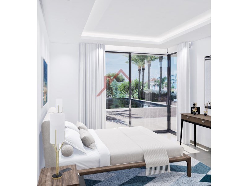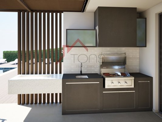 Die Master-Suite verfügt über einen großzügigen begehbaren Kleiderschrank und Zugang zu einer privaten Terrasse mit Sitzbereich und Bar, ideal für die Freizeit mit Familie und Freunden.