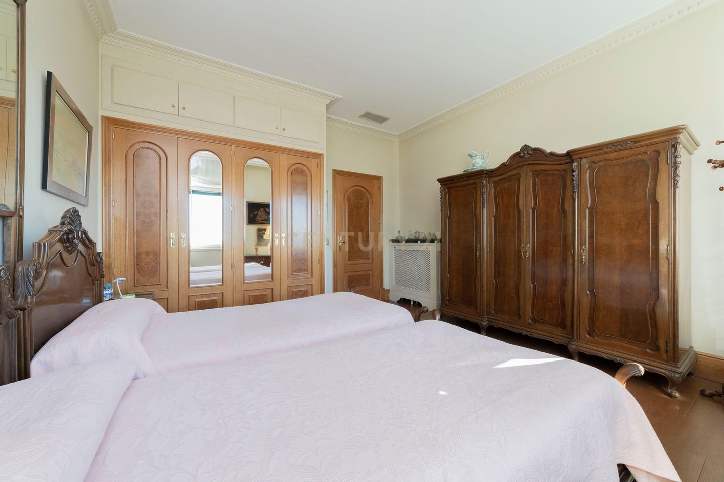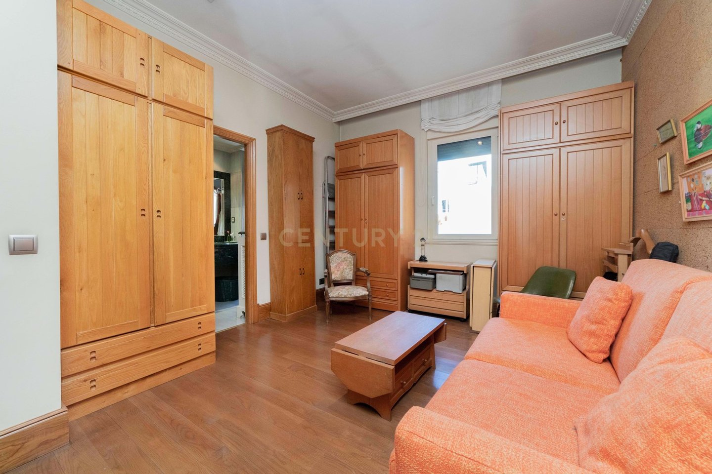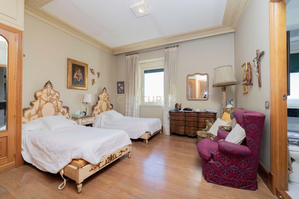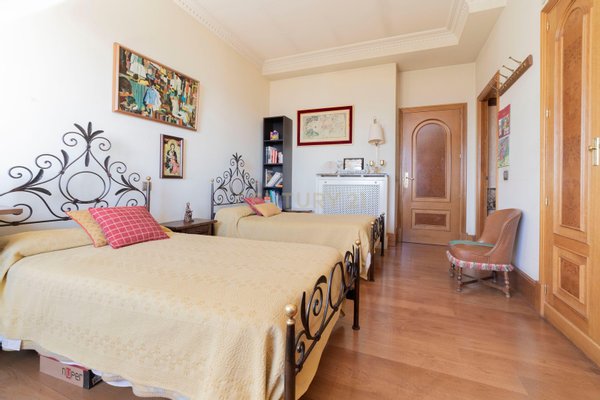 Das Penthouse verfügt über 12 große Fenster mit Blick auf die Casa de Campo sowie 1 Fenster mit Blick auf die Calle Marqués de Urquijo. Von den 5 Schlafzimmern sind 3 en-suite, darunter das Hauptschlafzimmer mit Panoramablick auf den Paseo del Pintor Rosales und die Casa de Campo. Es gibt ein viertes Schlafzimmer mit einem Badezimmer auf dem Flur sowie ein Serviceschlafzimmer und ein Badezimmer im Küchenbereich. Die Aufteilung ist funktional und umfasst 3 Suiten, ein geräumiges Wohnzimmer, das in zwei Bereiche mit einem beeindruckenden Kamin unterteilt ist, ein separates Büro und einen runden Raum im Turm, der als Wohn- oder Esszimmer dienen kann. Genießen Sie eine große Küche mit unabhängigem Zugang und einen Servicebereich. Zu den weiteren Ausstattungsmerkmalen gehören eine Klimaanlage, eine Alarmanlage und ein Abstellraum. Das Anwesen hat auch Zugang zu einer Option, separat eine private Garage in einem anderen Gebäude 100 Meter entfernt zu kaufen, da dieses Gebäude keine eigene Garage hat.
