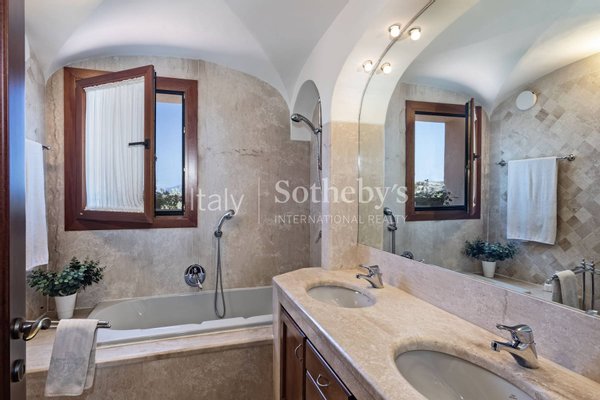 Elegante Panorama-Villa nur wenige Gehminuten vom renommierten Pevero Golf Club entfernt. Diese großzügige Residenz mit acht Schlafzimmern bietet einen atemberaubenden Blick auf den Golfplatz und das umliegende Meer und schafft so ein anspruchsvolles Ambiente an einem der exklusivsten Orte der Costa Smeralda.