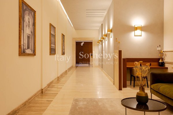 The project, signed by the Tamburini and dL Engineering studios, masterfully combines historical elegance with cutting-edge architectural and technological solutions, such as the scenic glass panoramic elevator, the imposing original monumental staircase, and the refined lobby, all enhanced with high-quality materials reinterpreted in a contemporary style.