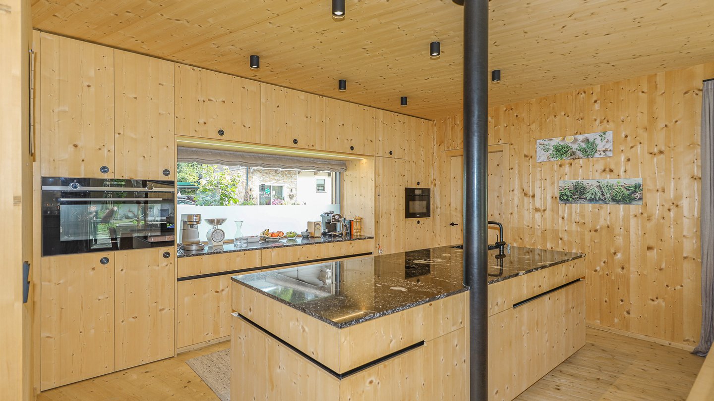 Durch die komplette Ausstattung in Holz, ist ein ganz besonderes Wohnambiente und Wohlgefühl vorhanden.