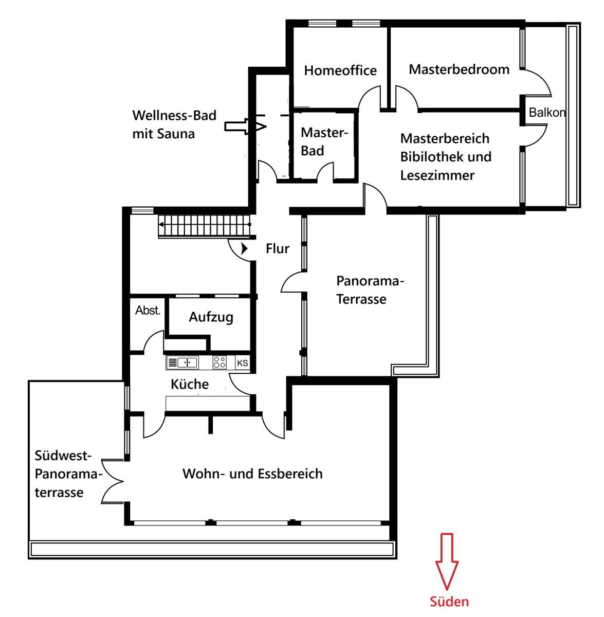 - Zwei große, zum Teil überdachte Dachterrassen im Südwesten und im Südosten
