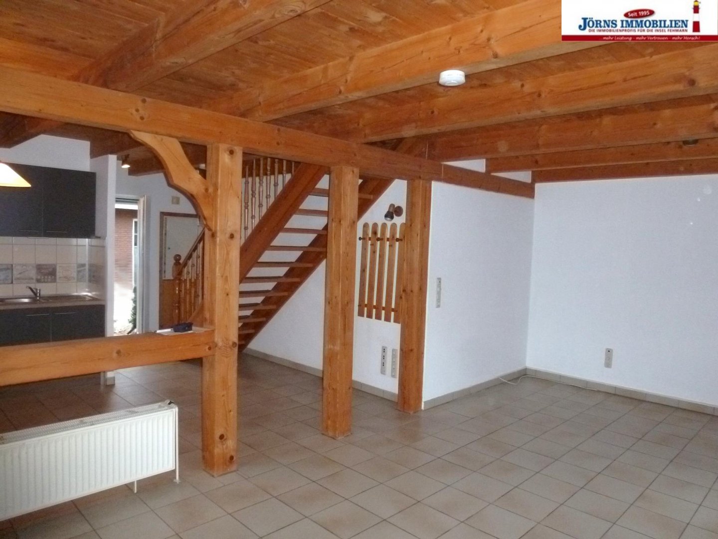 * offene Holzbalkendecke