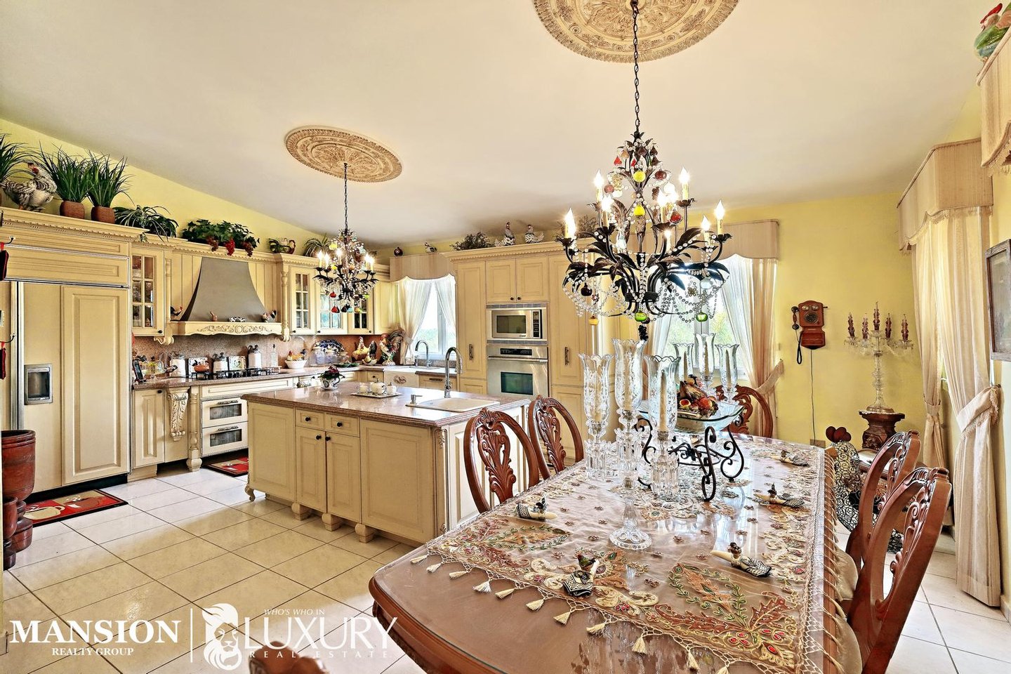 Wohnküche mit übergroßer Kochinsel, Sub-Zero-Kühlschrank mit Verkleidung, eingebautem Backofen und Mikrowelle, temperaturgesteuerten Gemüseschubladen und mehr.