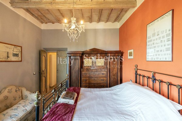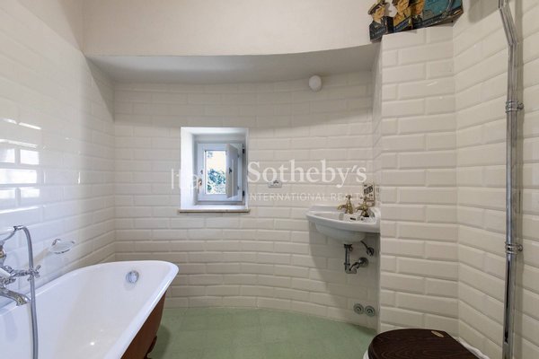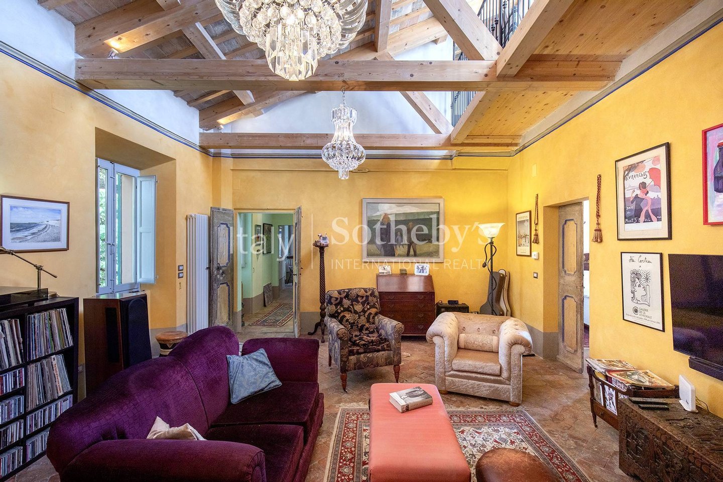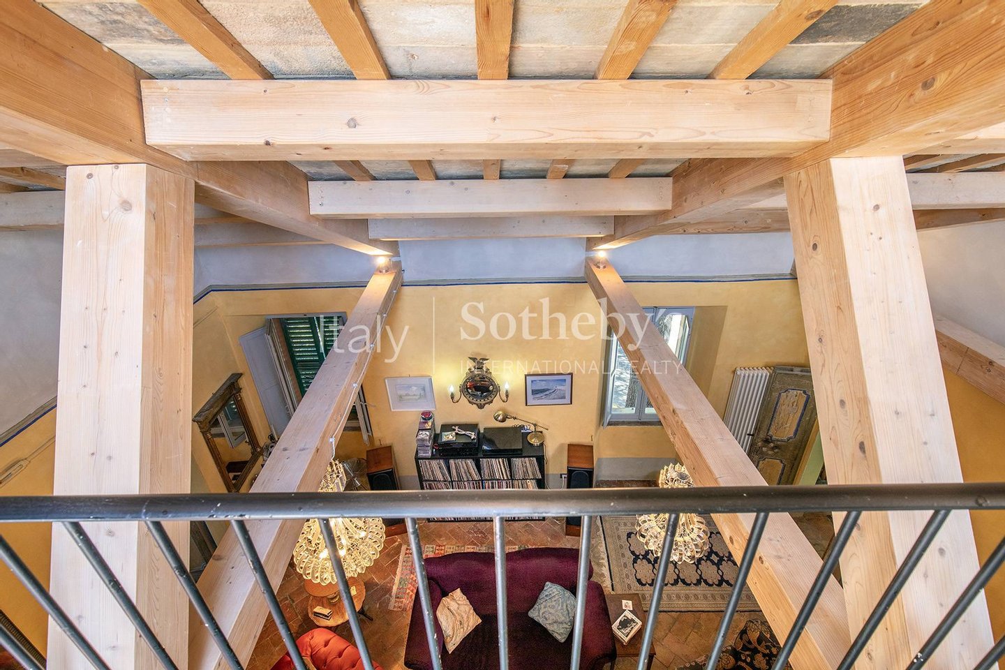 Im ersten Stock befinden sich ein lichtdurchflutetes Wohnzimmer mit Galerie, ein Arbeitszimmer und drei Doppelzimmer, jeweils mit eigenem Bad. Im zweiten Stock führt eine kleine Küche zu einer herrlichen Panoramaterrasse von 40 m² mit Blick, der sich von den Apenninen bis zur Adria erstreckt.