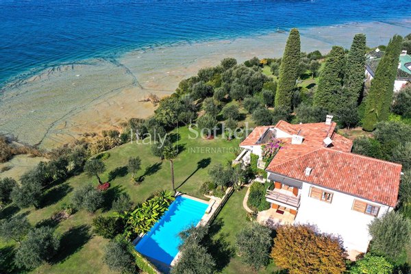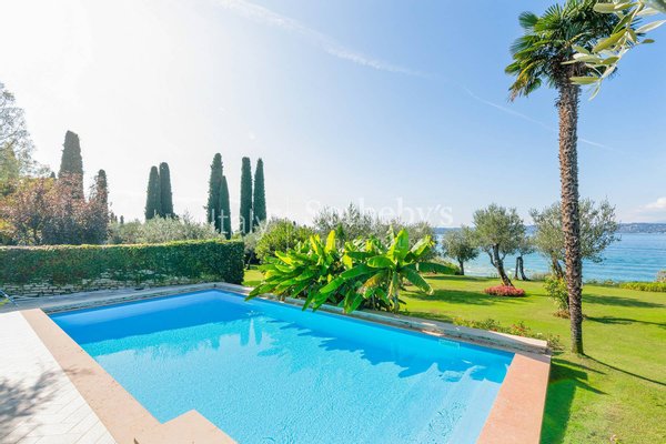 Diese prachtvolle Villa „pieds dans l'eau' befindet sich in einer der exklusivsten Lagen des Gardasees: an der Nordspitze der Halbinsel von Sirmione, jenseits der antiken Scaliger-Mauern und nur wenige Schritte von den Grotten von Catull, der