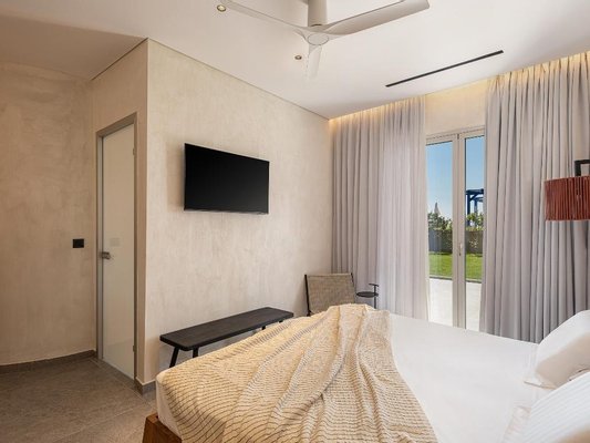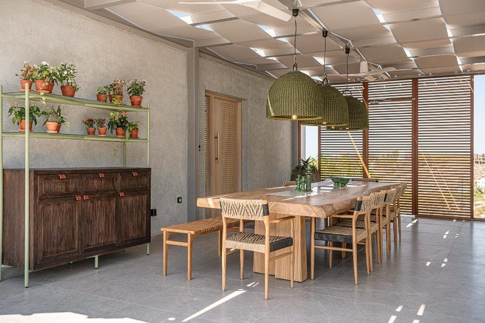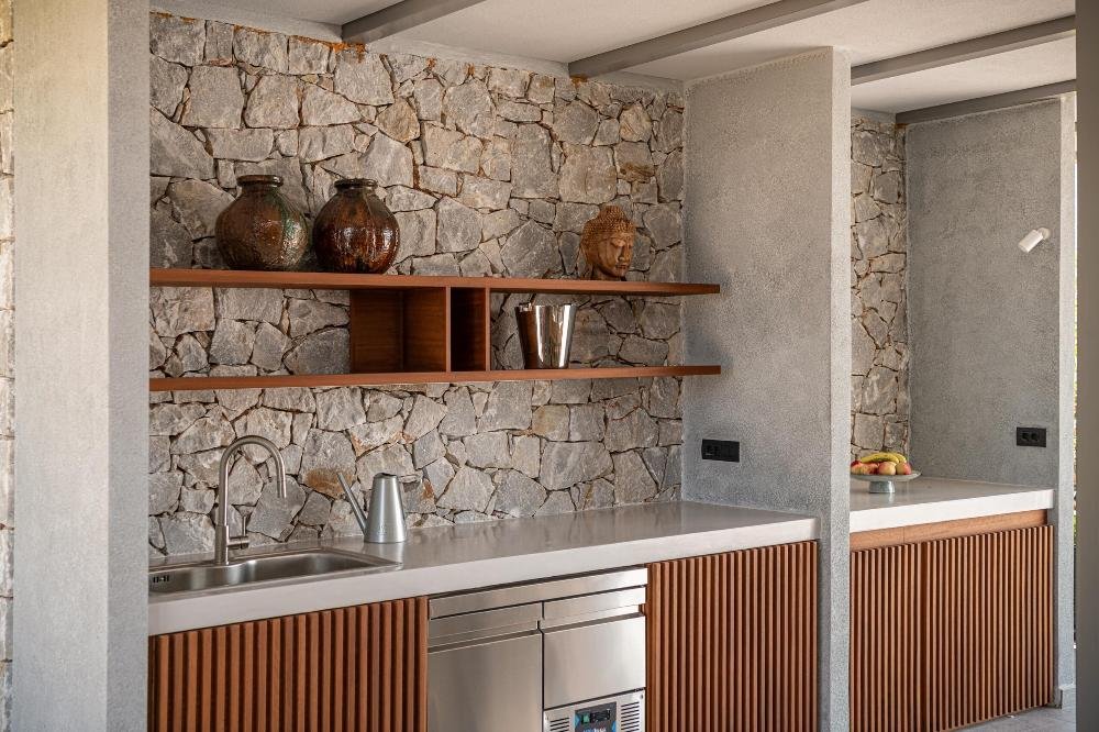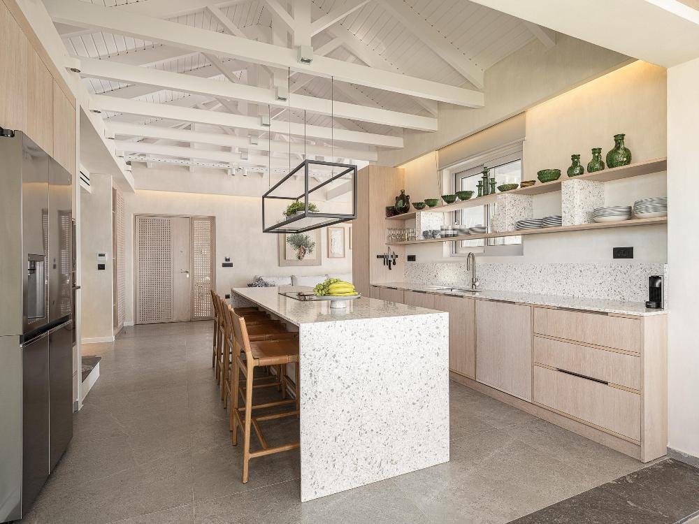 Im Inneren bietet die Villa geräumige, sonnendurchflutete Schlafzimmer mit eigenem Bad, einen gemütlichen Wohnbereich mit Eisenofen und ein Spielzimmer, ideal für Familienspaß oder die Unterhaltung von Gästen. Die moderne Küche ist komplett mit hochwertigen Geräten, Klimaanlage und Smart-Home-Technologie ausgestattet und sorgt für ein entspanntes Wohnen.