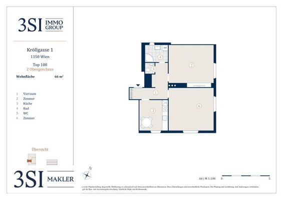 Die Wohnfläche von rund 66 m² überzeugt durch einen effizienten und gut durchdachten Grundriss, der sowohl Funktionalität als auch Wohnkomfort bietet. Die Raumaufteilung gestaltet sich wie folgt: