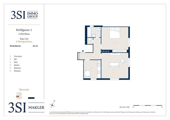 Die Wohnfläche von rund 66 m² überzeugt durch einen effizienten und gut durchdachten Grundriss, der sowohl Funktionalität als auch Wohnkomfort bietet. Die Raumaufteilung gestaltet sich wie folgt: