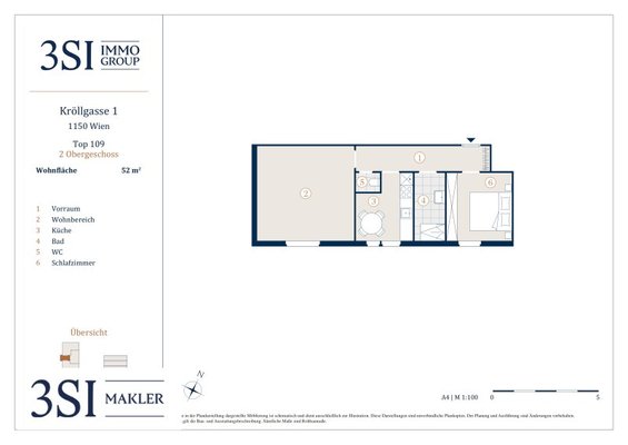 Die Wohnfläche von rund 52 m² überzeugt durch einen effizienten und gut durchdachten Grundriss, der sowohl Funktionalität als auch Wohnkomfort bietet. Die Raumaufteilung gestaltet sich wie folgt: