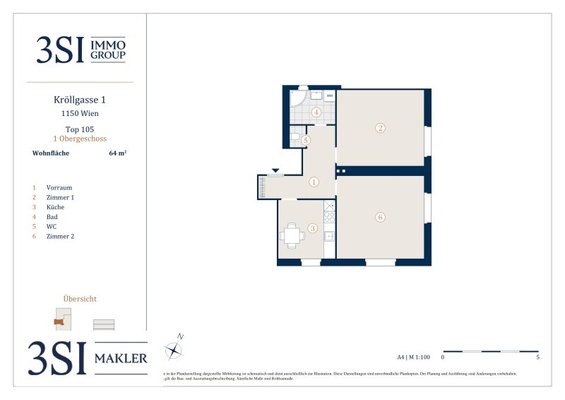 Die Wohnfläche von rund 64 m² überzeugt durch einen effizienten und gut durchdachten Grundriss, der sowohl Funktionalität als auch Wohnkomfort bietet. Die Raumaufteilung gestaltet sich wie folgt: