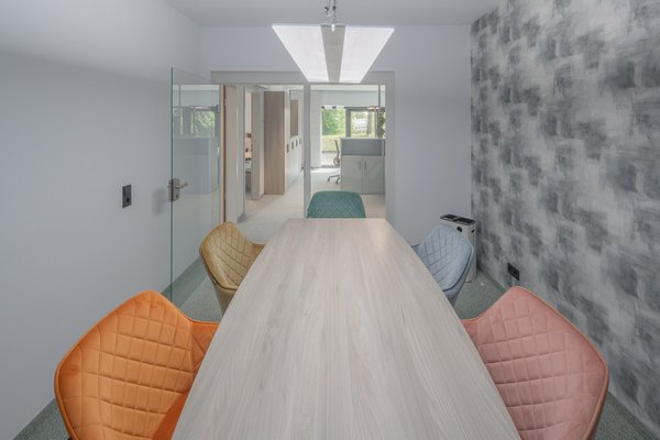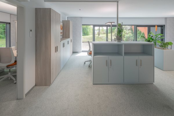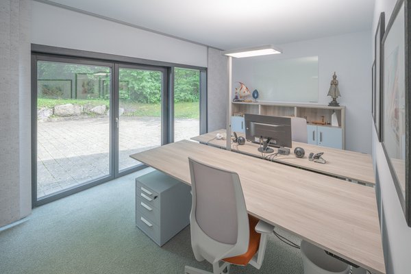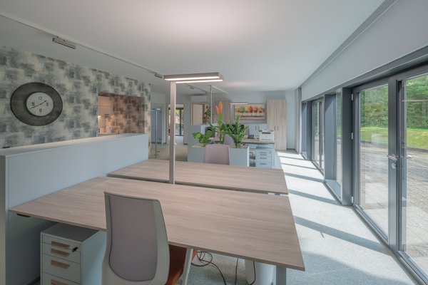 Das Büro verfügt über zwei Eingänge, einen vorderen und einen hinteren. Das bietet Ihnen und Ihren Besuchern besondere Flexibilität.