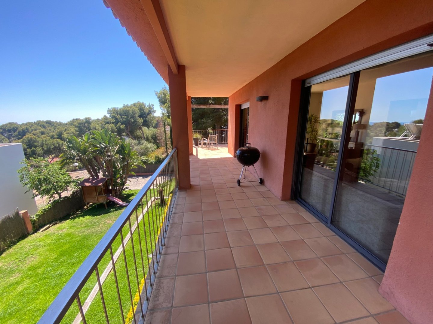 Gelegen in der exklusiven Wohngegend Montmar in Castelldefels, bietet dieses beeindruckende Einfamilienhaus einen herrlichen Blick auf das Mittelmeer und die Stadt Barcelona.