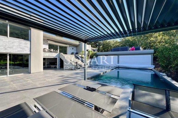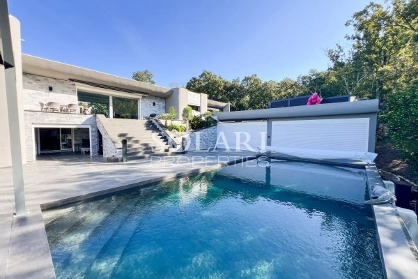 This contemporary 350 m² villa with swimming pool, built on an 8,900 m² plot, overlooks the Estérel mountain range.
