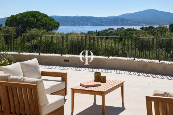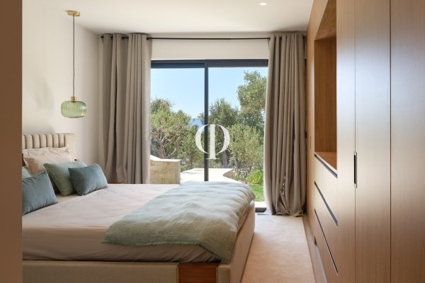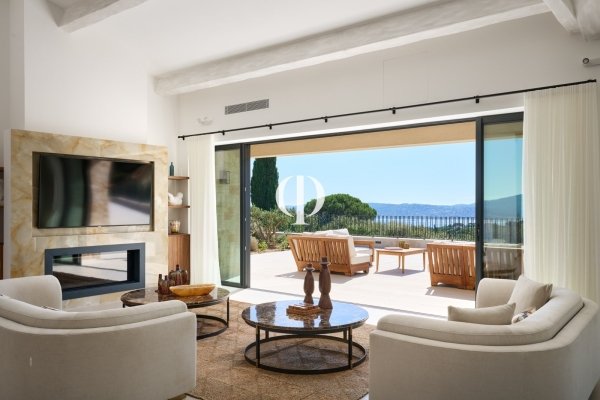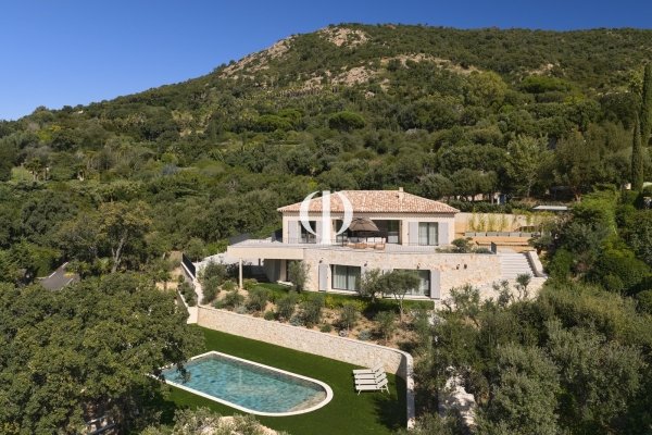 In einem der begehrtesten Anwesen von Grimaud, im Herzen des Golfs von Saint-Tropez, kombiniert diese renovierte Villa perfekt diskreten Luxus, authentischen Charme und spektakulären Meerblick. Dieses elegante, 300 m² große Anwesen wurde auf einem über 2.000 m² großen Grundstück erbaut und verfügt über typisch provenzalische Architektur, die subtil modernisiert wurde. Das Haus erstreckt sich über zwei Ebenen und bietet schöne, lichtdurchflutete Volumen. Vom weitläufigen Wohnzimmer, das durch seine große Terrasse erweitert wird, schweift der Blick durch große Erkerfenster auf das tiefe Blau des Meeres. Fünf Schlafzimmer mit eigenem Bad vervollständigen diesen Wohnraum mit Nüchternheit und Eleganz. Draußen fügt sich der Swimmingpool, der von Olivenbäumen und einheimischen Arten gesäumt ist, in eine typisch mediterrane Landschaft ein. Ein paar Stufen führen zu einem Poolhaus, das so konzipiert ist, dass Sie den Sommer zwischen Schatten und Sonne in vollen Zügen erleben können. Eine geräumige, geschlossene Garage und mehrere Parkplätze runden die Ausstattung dieser Immobilie ab, die sich in einer der begehrtesten Gegenden der Côte d'Azur befindet.