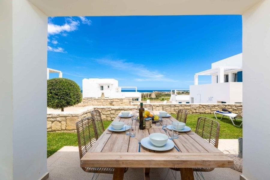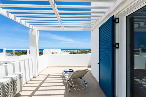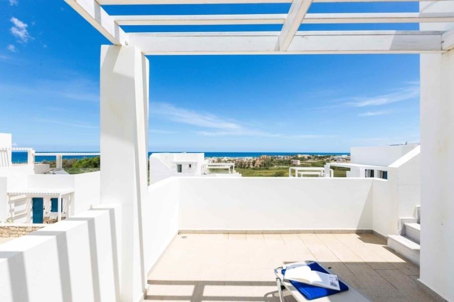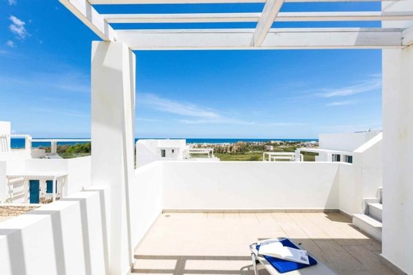 Es gibt zwei Arten von Immobilien: ein- und zweistöckige Häuser. Jedes Objekt verfügt über Meerblick, einen eigenen Garten und eine Dachterrasse, während einige Objekte mit schattenspendenden Pergolen ausgestattet sind.