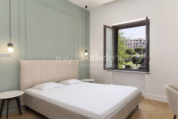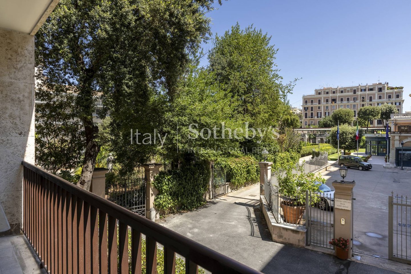 Im authentischsten Herzen Roms, mit Blick auf die zeitlose Eleganz der Gärten des Palazzo Barberini, befindet sich ein repräsentatives, raffiniertes Apartment im ersten Stock eines historischen Gebäudes mit Concierge-Service.