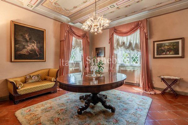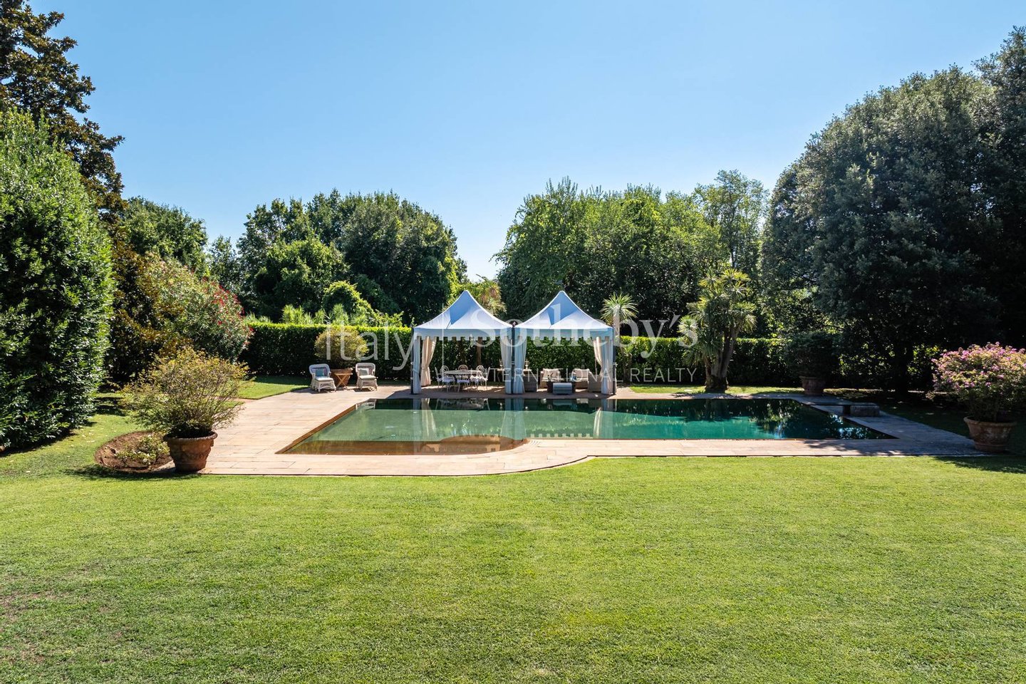 Eingebettet in die Ruhe der lukanischen Landschaft und nur wenige Minuten vom historischen Zentrum von Lucca entfernt, bietet diese elegante Villa aus dem 19. Jahrhundert mit einer Wohnfläche von ca. 800 m² eine seltene Gelegenheit für all jene, die in einem exklusiven, von Grün umgebenen Umfeld leben möchten.
