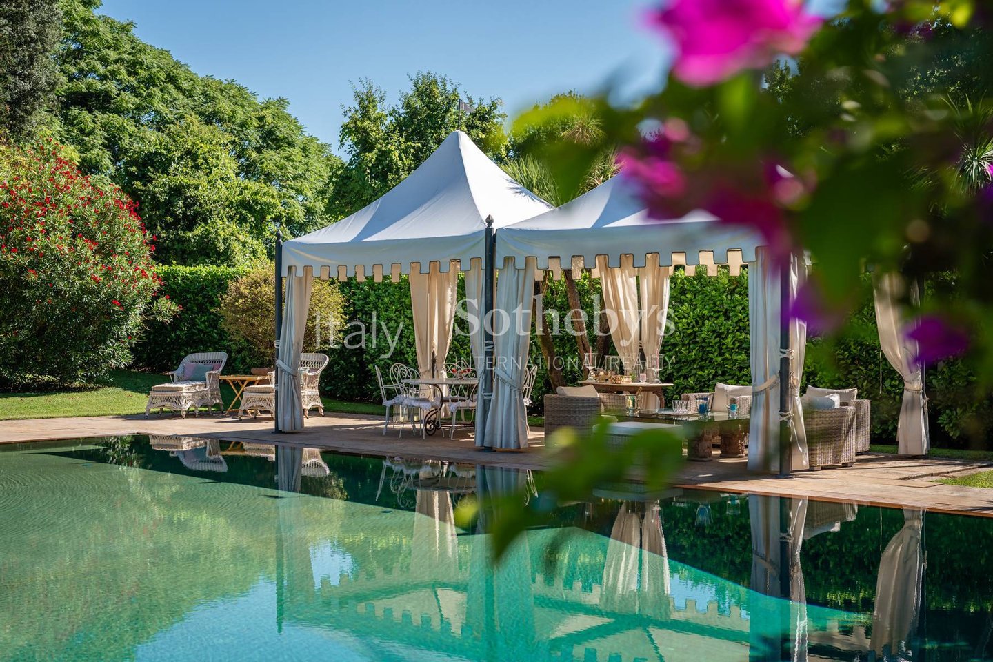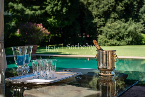 Das Anwesen liegt inmitten eines gepflegten, ca. 7.000 m² großen Privatparks, der vollständig von einer stilvollen Natursteinmauer eingefasst ist. Innerhalb dieses Areals befindet sich ein herrlicher Pool von 16 x 8 Metern.