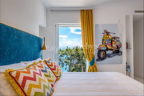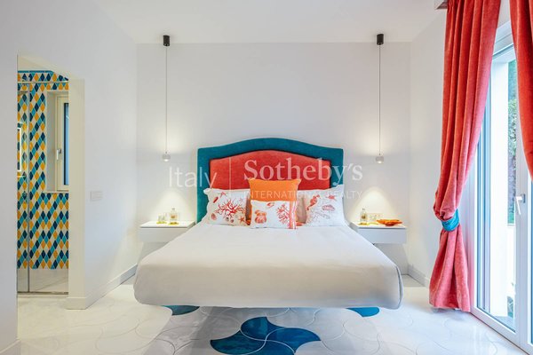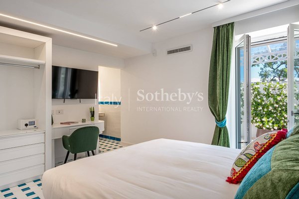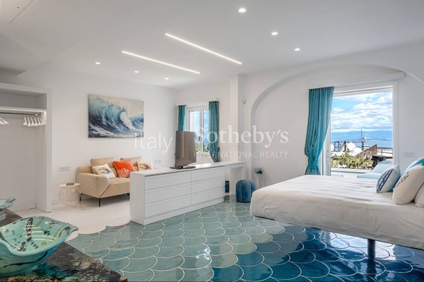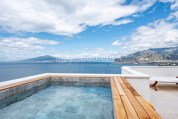 The highlight of the villa is the stunning panoramic rooftop, fully equipped with umbrellas, sun loungers, and a beautiful hydromassage pool. From here, guests can enjoy breathtaking views over the Gulf of Sorrento-an ideal spot for moments of pure relaxation, suspended between sky and sea.