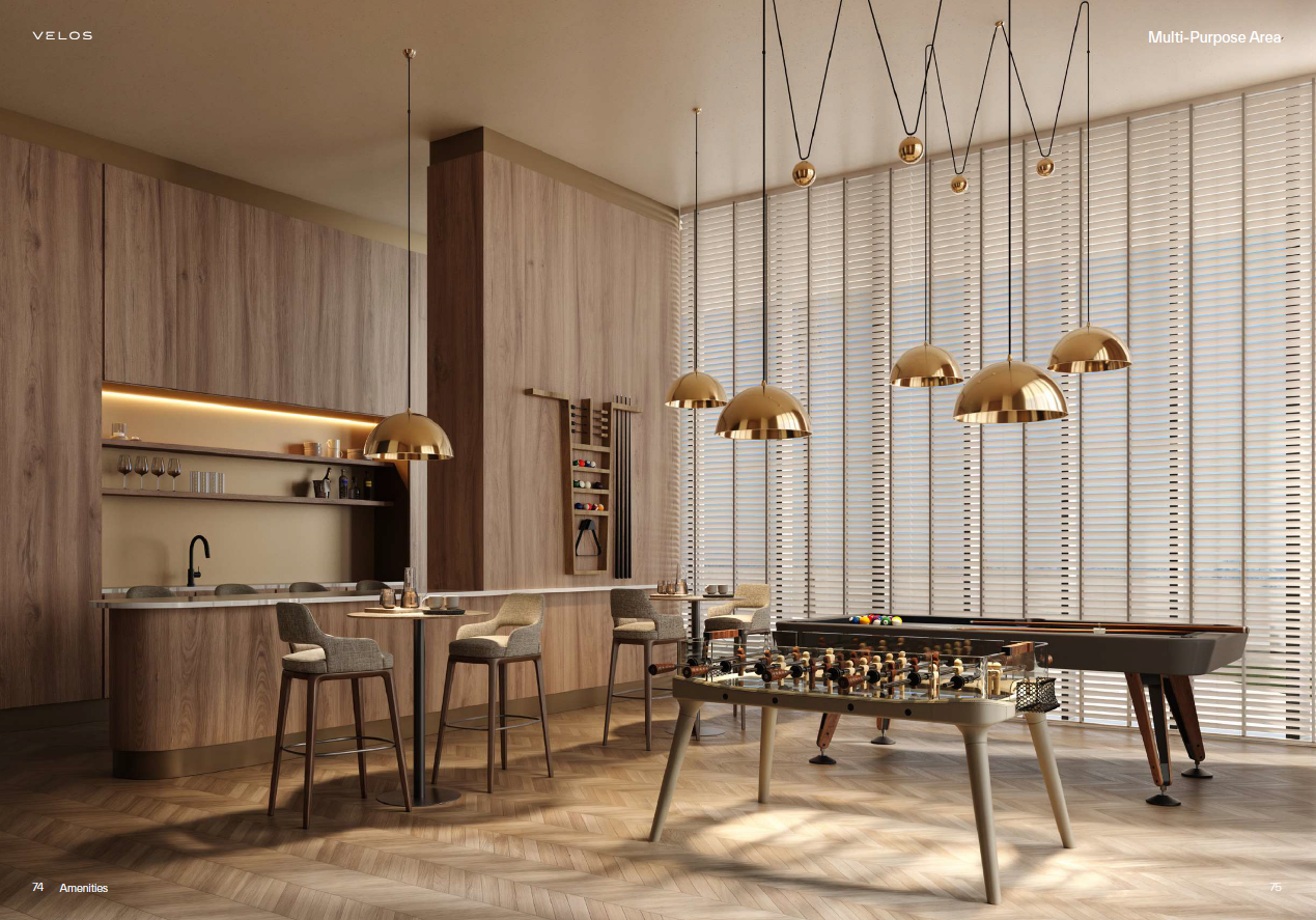 Erholung bietet der japanische Zen-Garten sowie der mediterran gestaltete Garten. Auf dem Dach erwartet Sie ein Infinity-Pool mit Holzdeck, ein Padel- und Basketballplatz sowie ein Bereich für Haustiere. Die Lounge, die Getränkebar und die Co-Working-Zone laden zum Verweilen ein, während Sie sich im Jogging-Track sportlich betätigen können.
