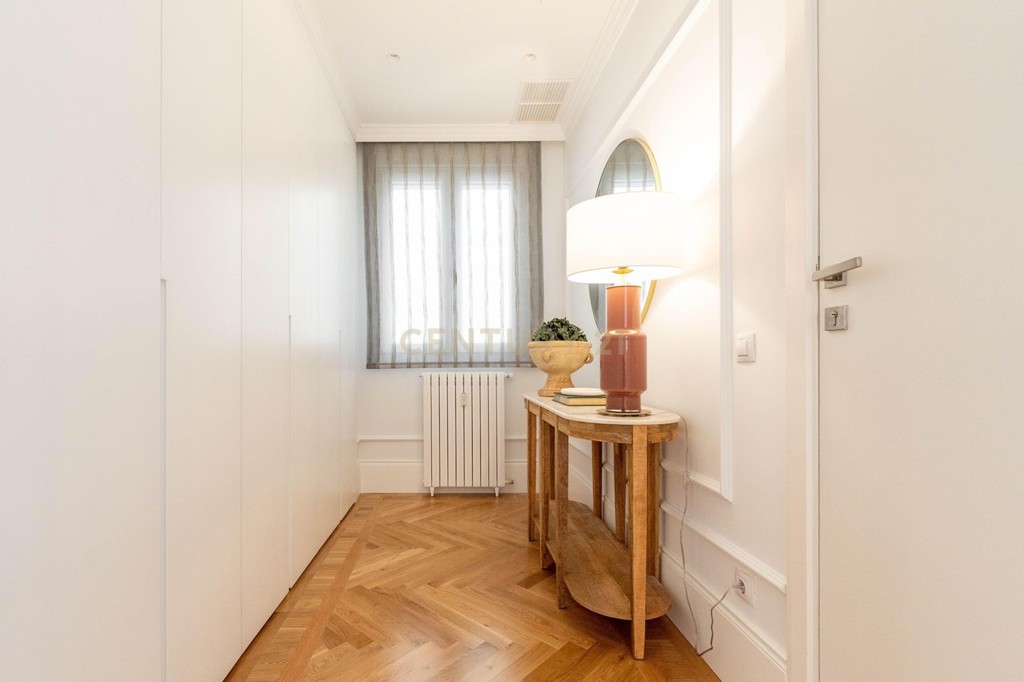 The apartment has been renovated with the best qualities by a prestigious architectural firm. Architectural elements of the time have been maintained. Moldings, hardwood floors, double glazed tilt and turn windows, ducted air conditioning with independent regulators in each room, home automation. All closets and dressers, from floor to ceiling, are dressed and have led light making the most of the storage capacity.