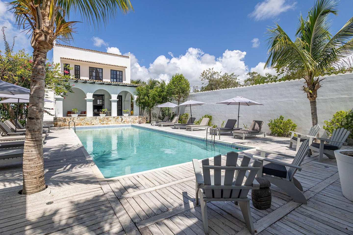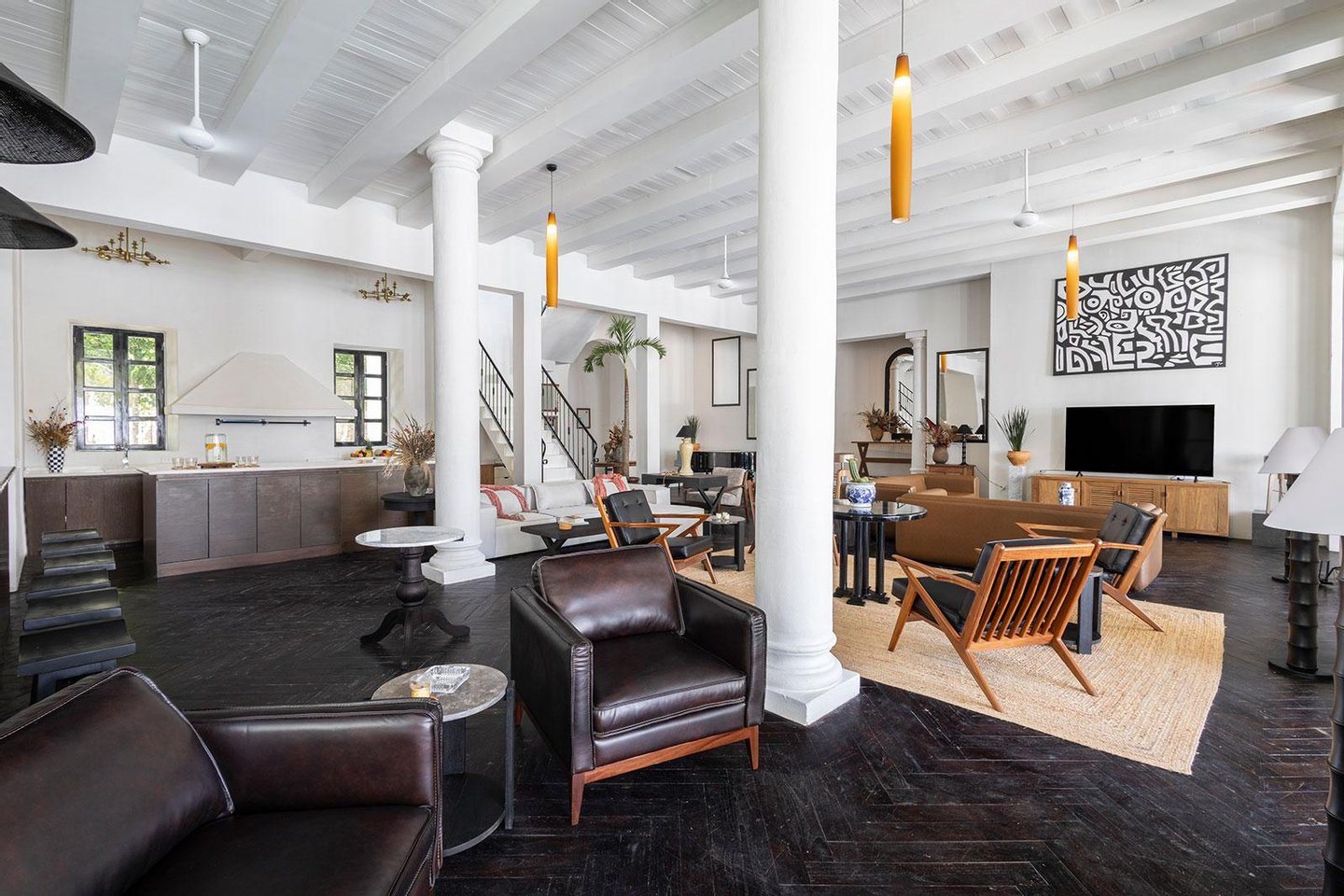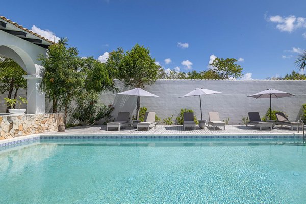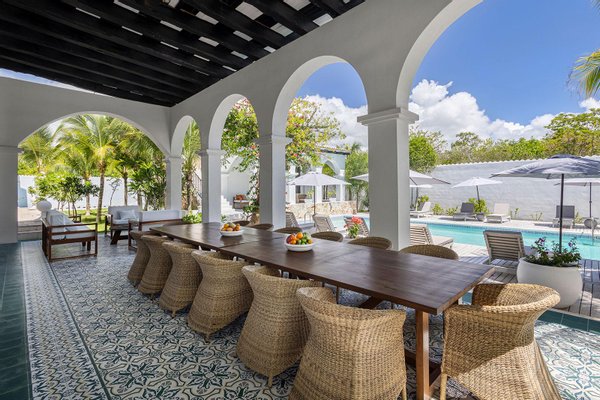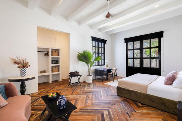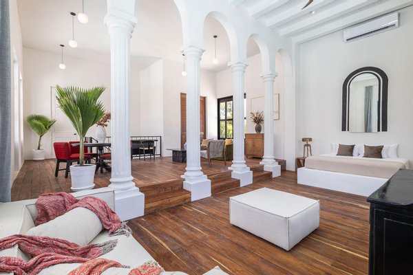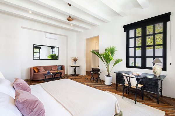 Jeder Winkel des Anwesens zeugt von durchdachter Handwerkskunst und gehobener Gastfreundschaft. Verschlungene Wege durch tropische Gärten verbinden Samtlounges, einen 200 Jahre alten Flügel und gemütliche Ecken mit privaten Terrassen. Die Gäste können sich in zwei separaten Swimmingpools entspannen - einer ideal für gesellige Nachmittage, der andere ein ruhiges Tauchbecken vor der Master-Suite mit Blick auf das Baldachin.