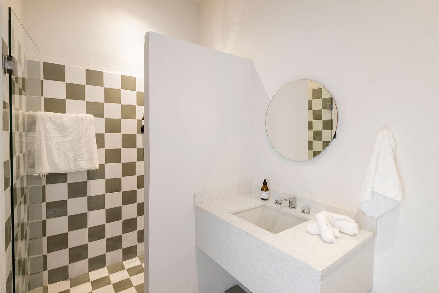 - Außendusche und Badezimmer