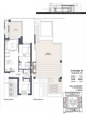 Obergeschoss-Wohnungen mit 2 Schlafzimmern, 2 Bädern, Dachterrasse, Klimaanlage, Einbauküchen mit Elektrogeräten, Kfz-Stellplatz und Gemeinschaftspool