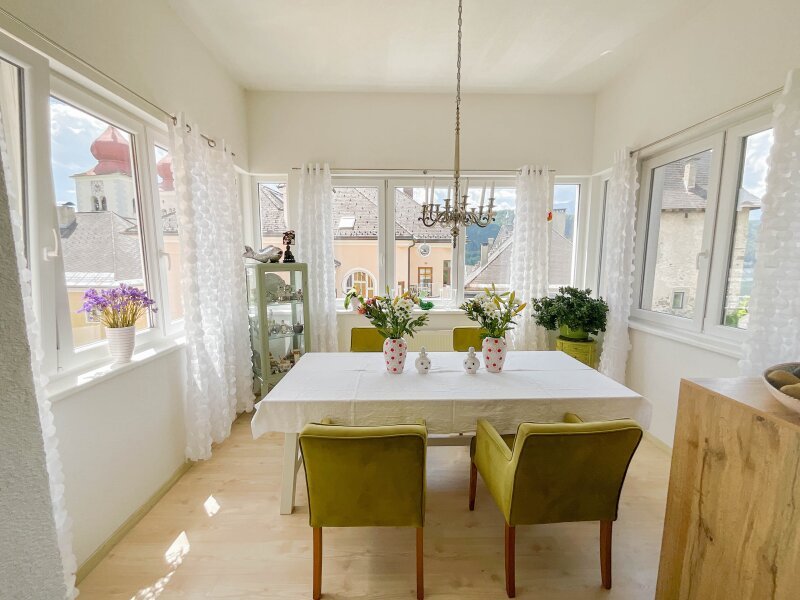 Über einen Vorraum mit Garderobenbereich gelangen Sie direkt in den extrem großzügigen und hellen Wohn-Essbereich mit stylischer Küche und einem Wintergarten, welcher sicherlich das absolute Highlight und Herzstück dieser Eigentumswohnung ist. In diesen charmanten Räumlichkeiten können Sie sich bestens Entspannen und das Leben in vollen Zügen genießen. Die Aussicht auf den smaragdgrünen Millstätter See und die beeindruckenden "Zwiebeltürme" sind einfach phänomenal.