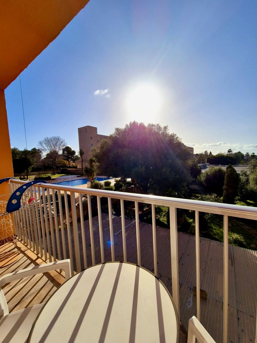 Der offen gestaltete Schlafbereich fügt sich harmonisch in den Wohnraum ein, während die funktionale Küche und das gepflegte Badezimmer den Komfort abrunden. Der angrenzende Balkon lädt zum Entspannen ein und bietet einen schönen Ausblick mit teilweisem Meerblick.