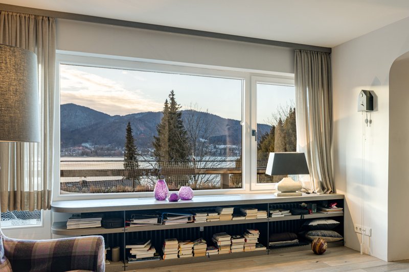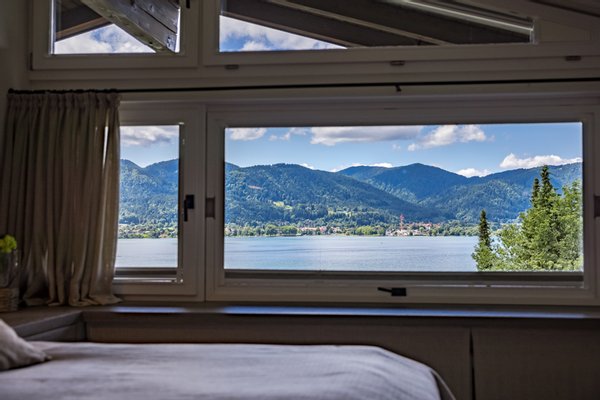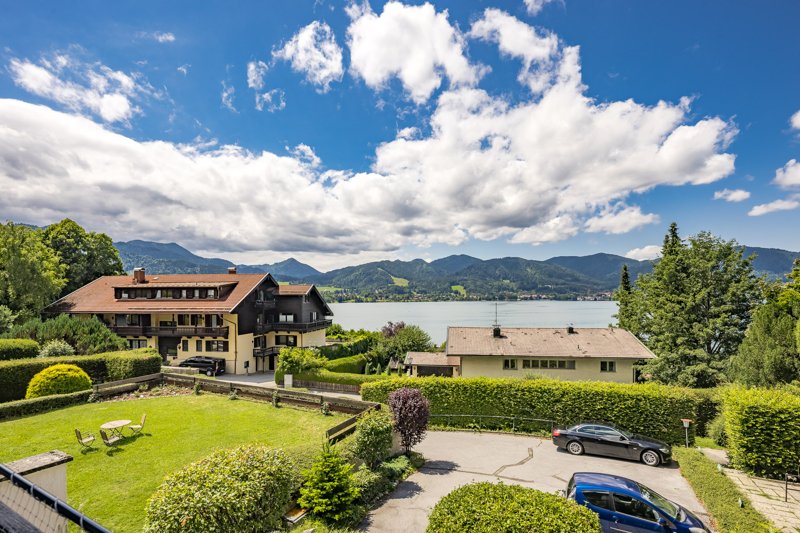Kleiner Exkurs – Kennerinnen und Kenner wissen: es gibt „Seeblick“ und es gibt „Seeblick“. Das Panorama, was Ihnen hier geboten wird, gilt als Rolls-Royce unter den Aussichten. Sie lächeln den ganzen Tag in die Sonne, überschauen die malerische Landschaft der bayerischen Voralpen von Rottach bis Gmund und haben den kompletten See vor Augen.