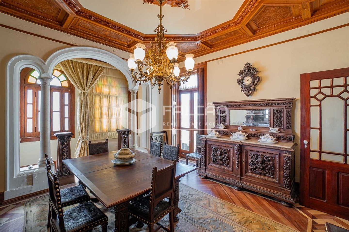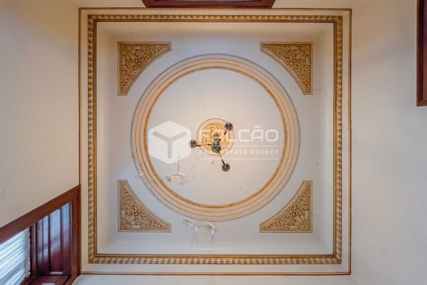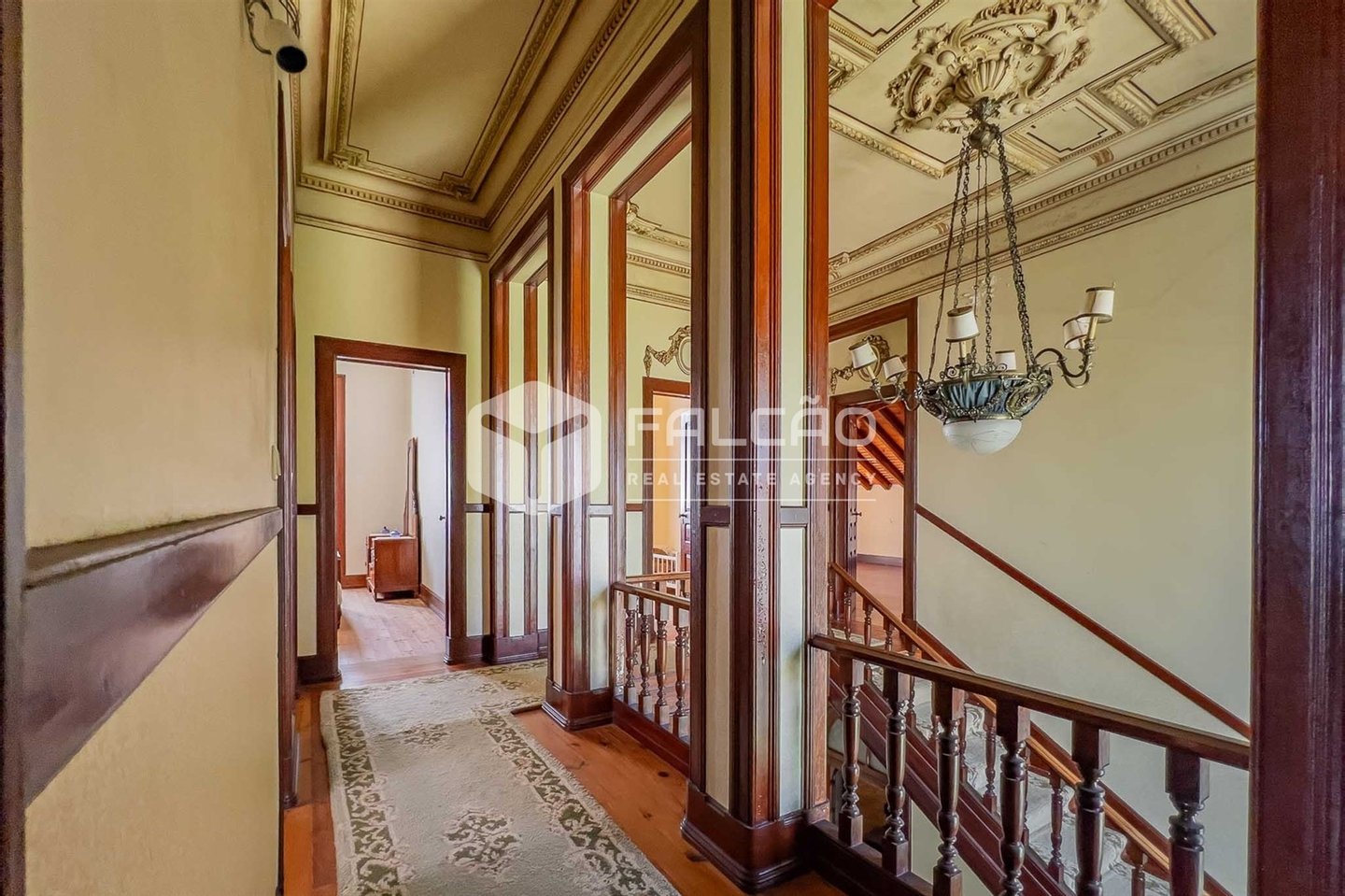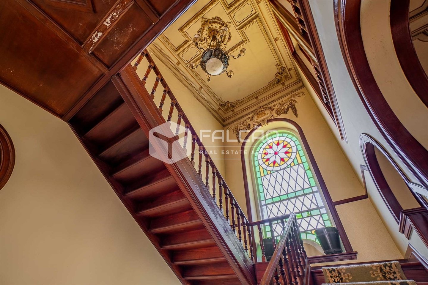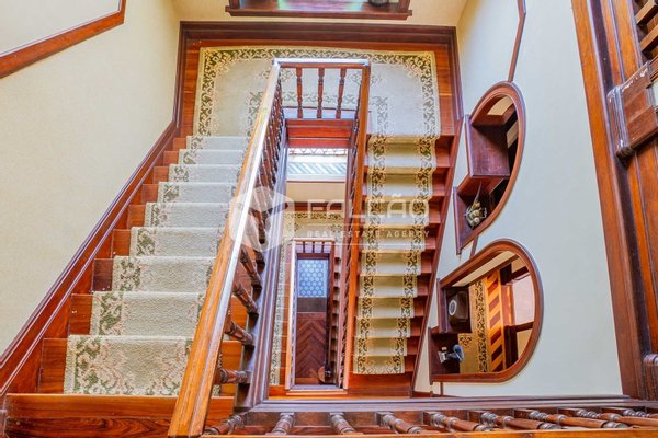 Mit 657 m² Bruttofläche, verteilt auf drei Etagen und 25 Zimmern, lädt das Anwesen zu einer Reise in die Vergangenheit ein. Die kunstvoll gefertigten und handbemalten Decken, die Hartholzböden, die Deckenhöhe von über 3,4 Metern und die edle Holztreppe mit bunten Glasfenstern sind alles Elemente, die den imposanten Charakter dieser Residenz bestimmen.