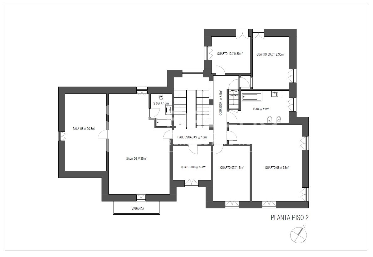 2e verdieping: 5 slaapkamers, 2 woonkamers en 2 badkamers;