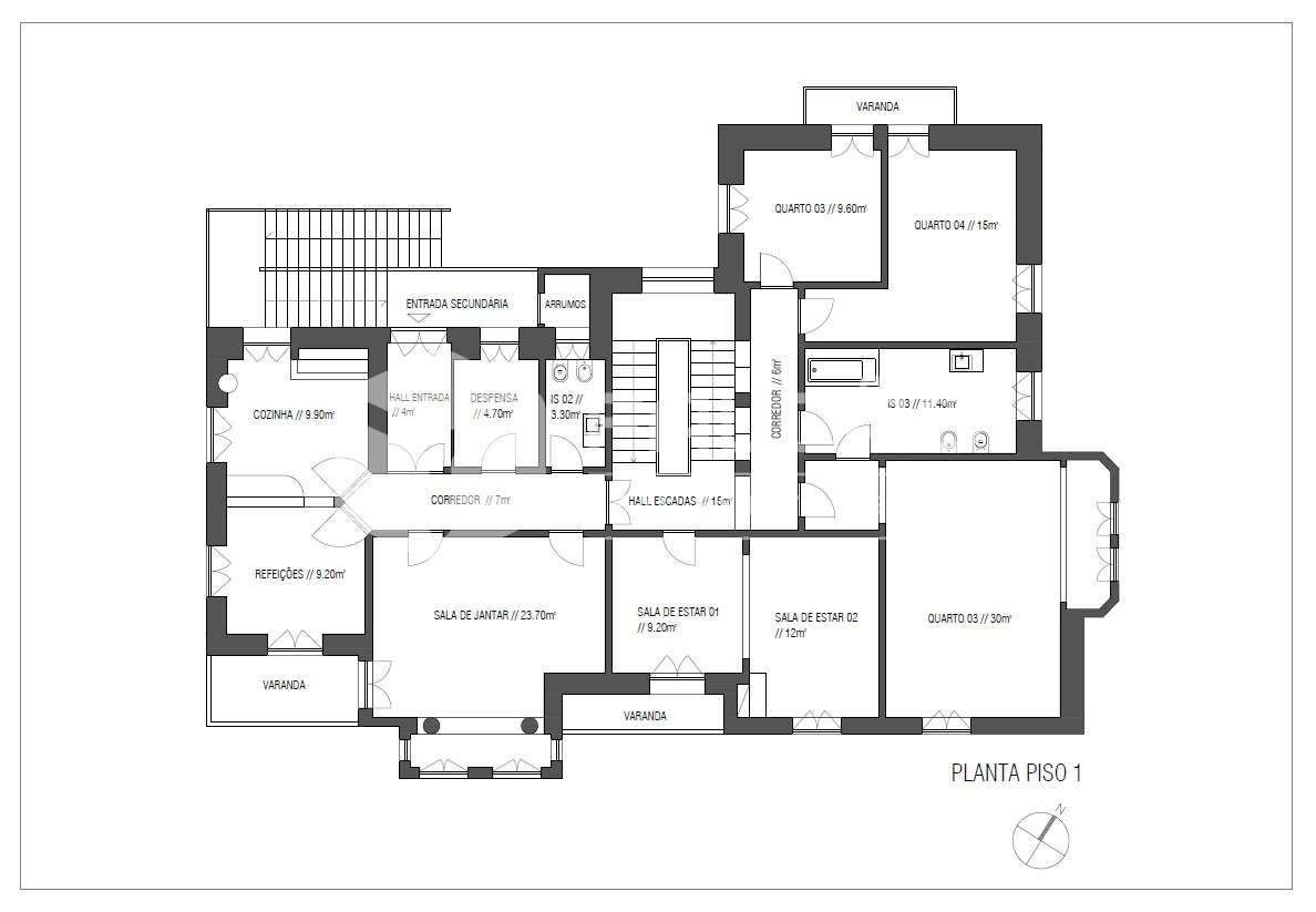 1e verdieping: 3 slaapkamers, 2 badkamers en 2 woonkamers, eetkamer, keuken en eetkamer;