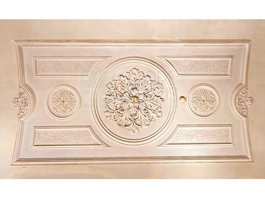 Edle Materialien wie bearbeiteter Stein, Wappen, Wände mit gearbeiteten Gemälden, ... Die sich in großen Sälen und Räumen mit Gewölben mit hohen Decken manifestieren.