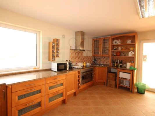 Großzügige, voll ausgestattete Küche, im offenen Raum mit Wohn- und Essbereich.