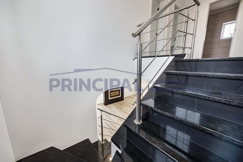 Im Erdgeschoss befindet sich die Eingangshalle, ein geräumiges Wohn- und Esszimmer mit Kamin und Türen mit Fenstern, die nach draußen führen und viel Tageslicht bieten. Offener Raum und voll ausgestattete Küche. Wir haben auch eine Service-Toilette auf dieser Etage.